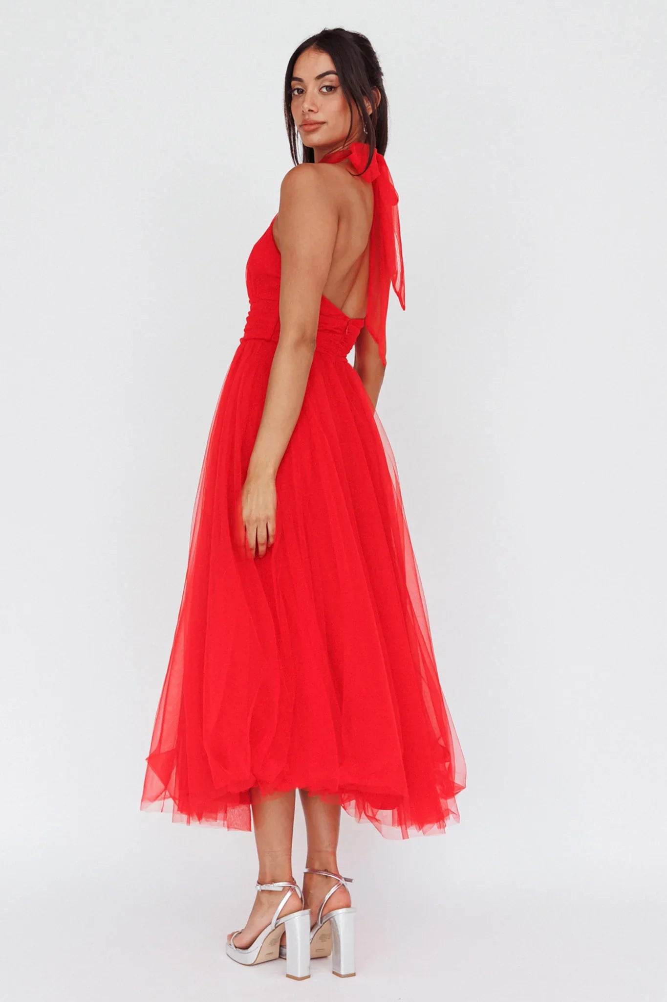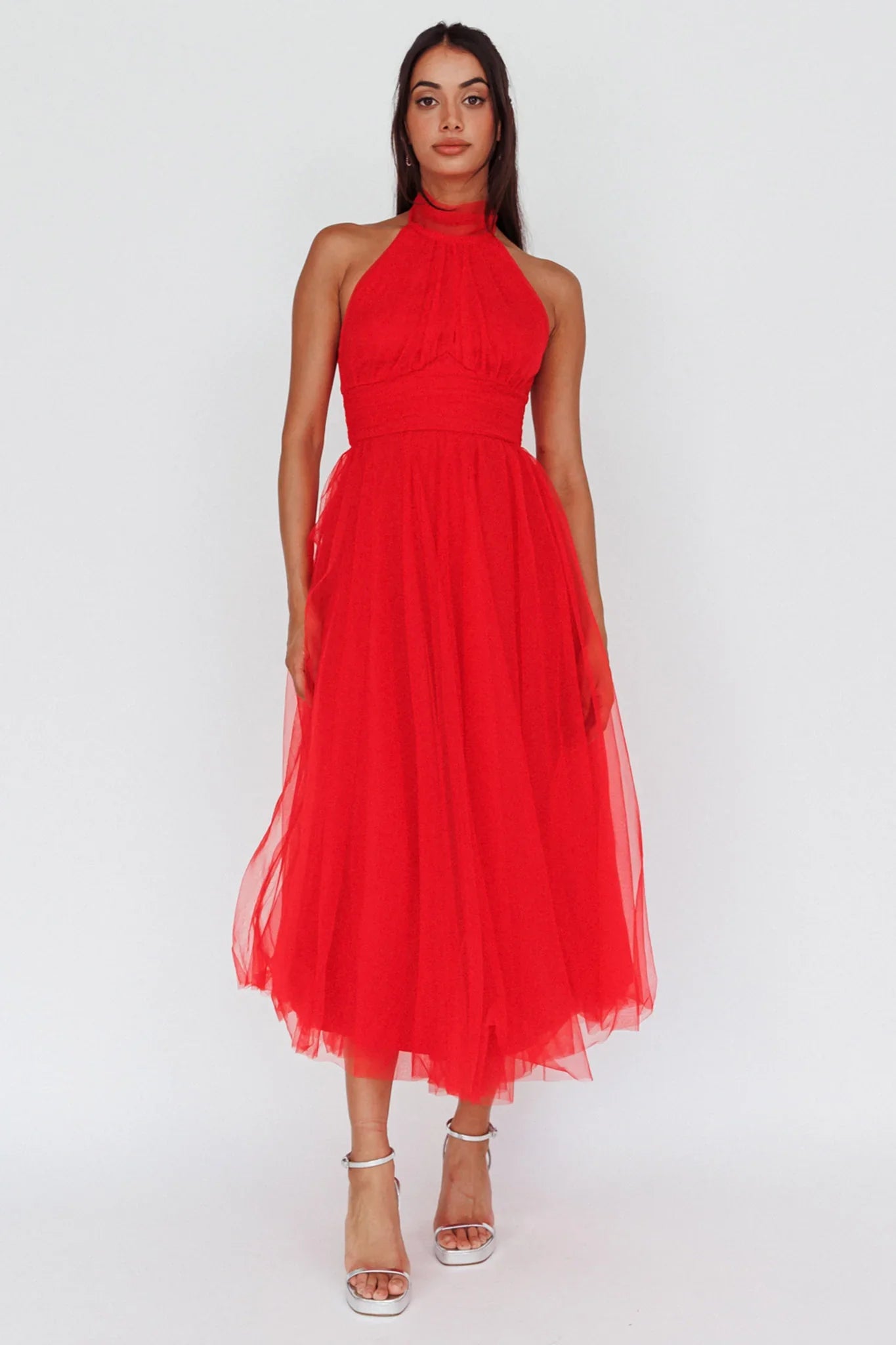 You'll feel like a princess in our stunning Andria midi dress. Perfect for a wedding or special occasion where you need to look like literal royalty. We are obsessed with its romantic tulle and gorgeous high-neck halterneck. Team it with diamante heels and a satin clutch for a look that'll leave Prince Charming speechless.