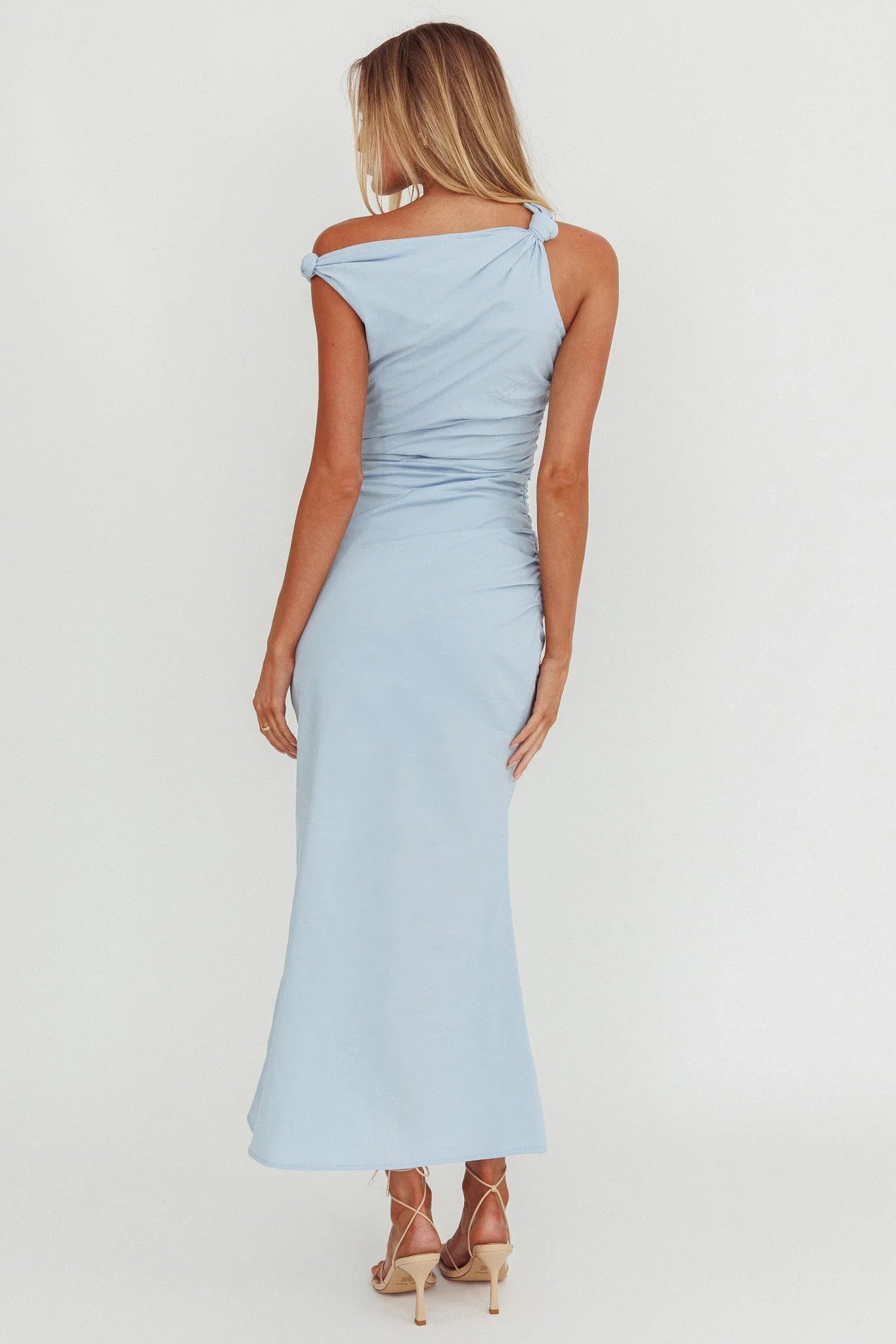 You'll look like you stepped out of Heaven in our pretty Angel's Song maxi dress. We are head over heels for the knot detail straps and asymmetric neckline. It's the perfect choice for a wedding or special date night teamed with strappy, nude heels and a mini purse for a chic look.