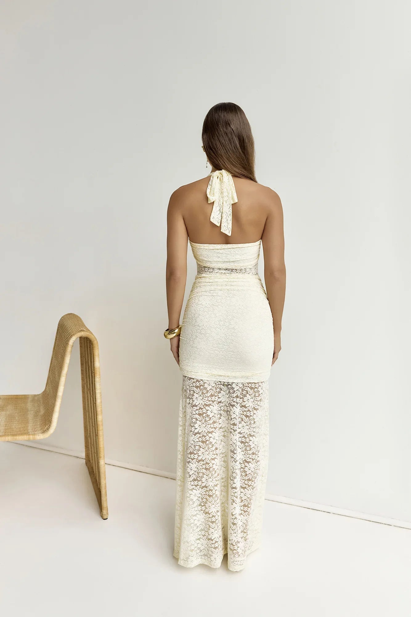 The perfect blend of glam and luxe, the Annika Maxi Dress in Lemon by RUNAWAY THE LABEL is dress to made a statement in. Featyrung a halter necktie, delicate lace throughout and a front split, style yours with kitten heels and gold jewellery to turn heads wherever you go.