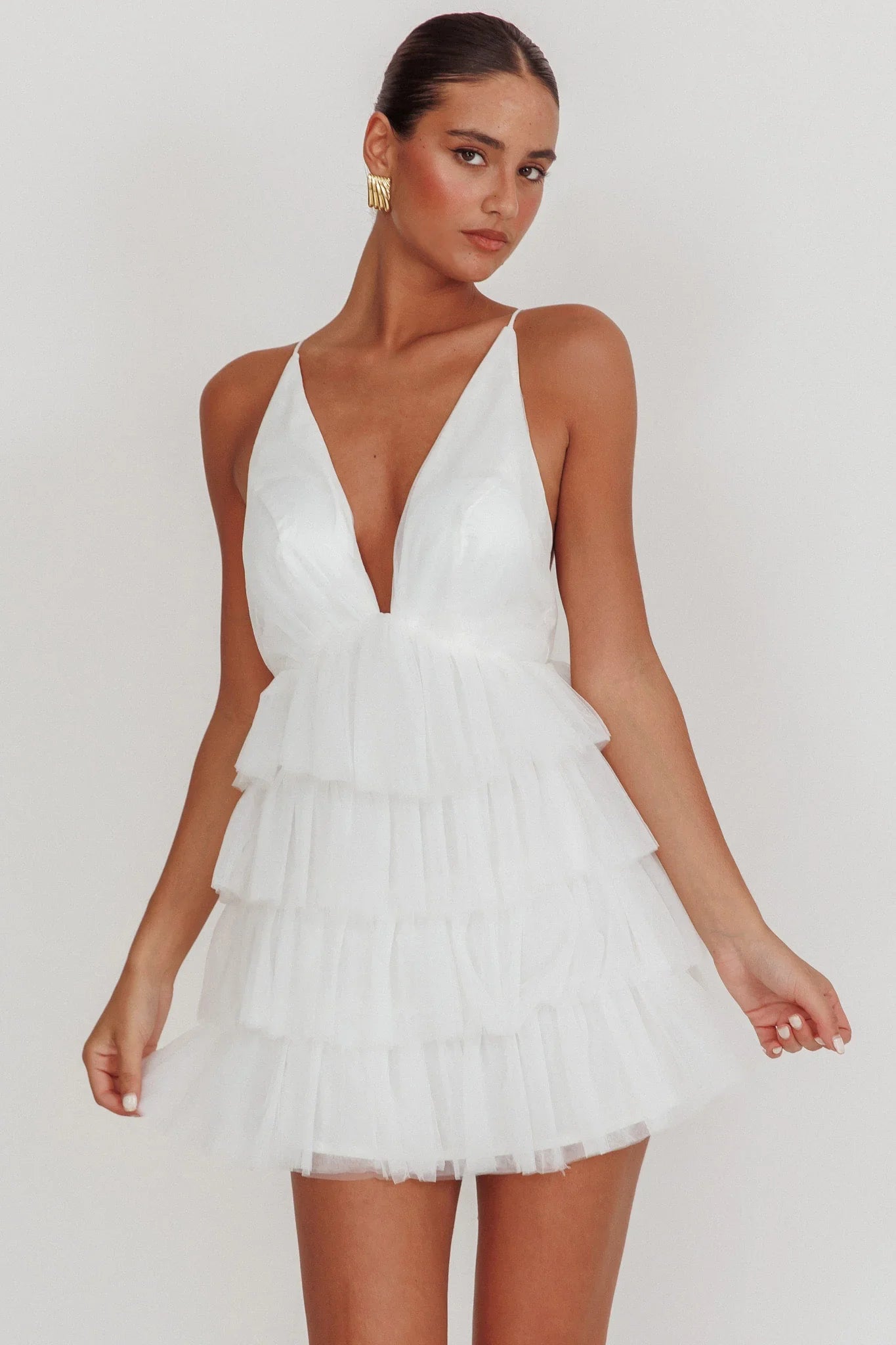 You will steal the show in our gorgeous Auguste mini dress. Featuring a plunging neckline and tiered ruffle bodice. Wear it to a bachelorette or a special birthday celebration. Team it with nude heels and a clutch for a look that'll have you flooded with compliments.