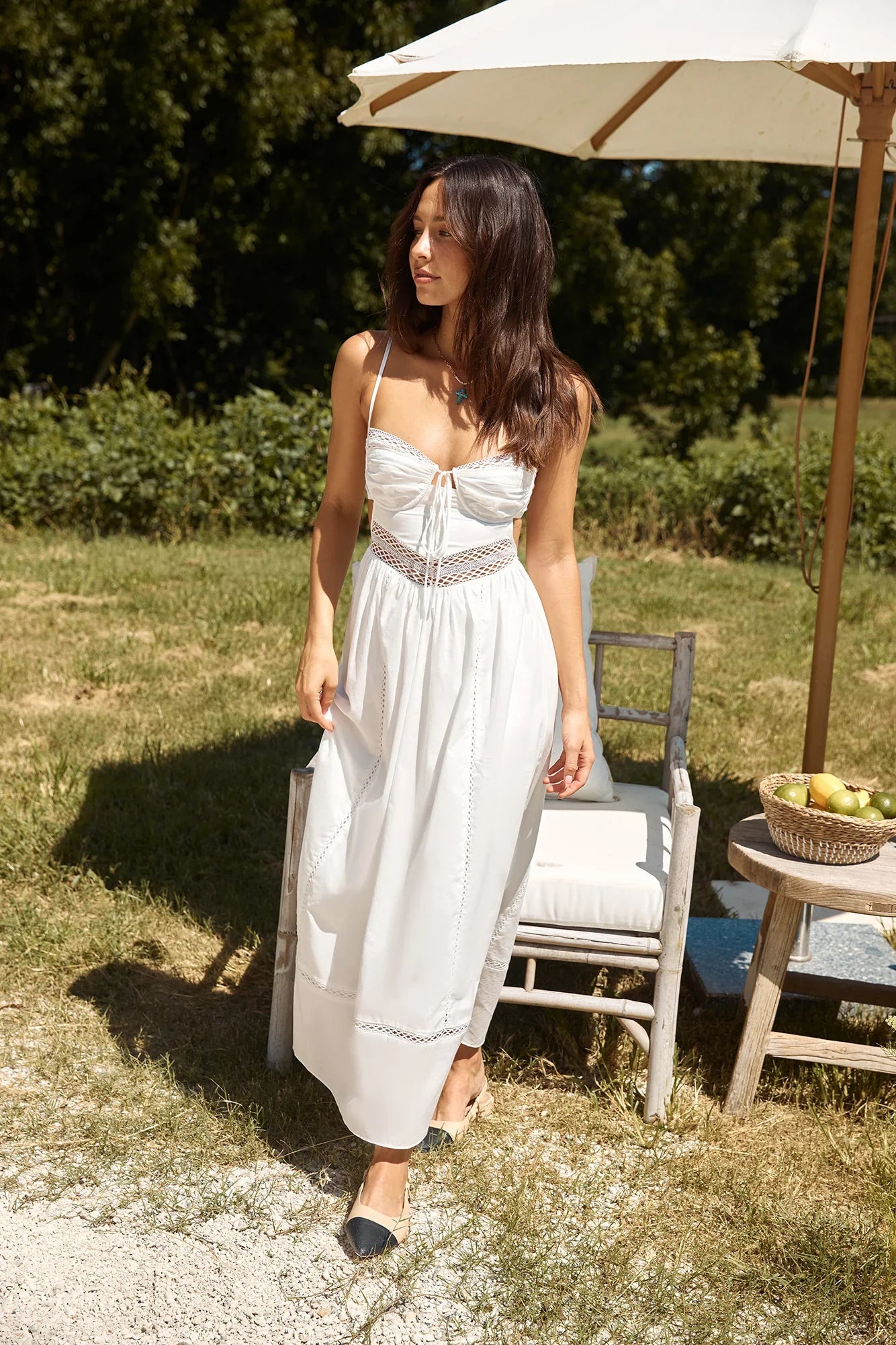 Step into a vision of timeless grace with our Between Fields Maxi Dress in White. This ethereal dress, with its flowing silhouette and delicate details, is an ideal choice for romantic escapes to countryside retreats in Tuscany or leisurely walks through the lavender fields of Provence.