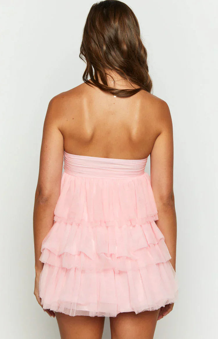 Make a statement at your next event in this pink strapless dress! Featuring a stunning tiered design, pair with white strappy and gold jewellery to look effortlessly gorgeous!