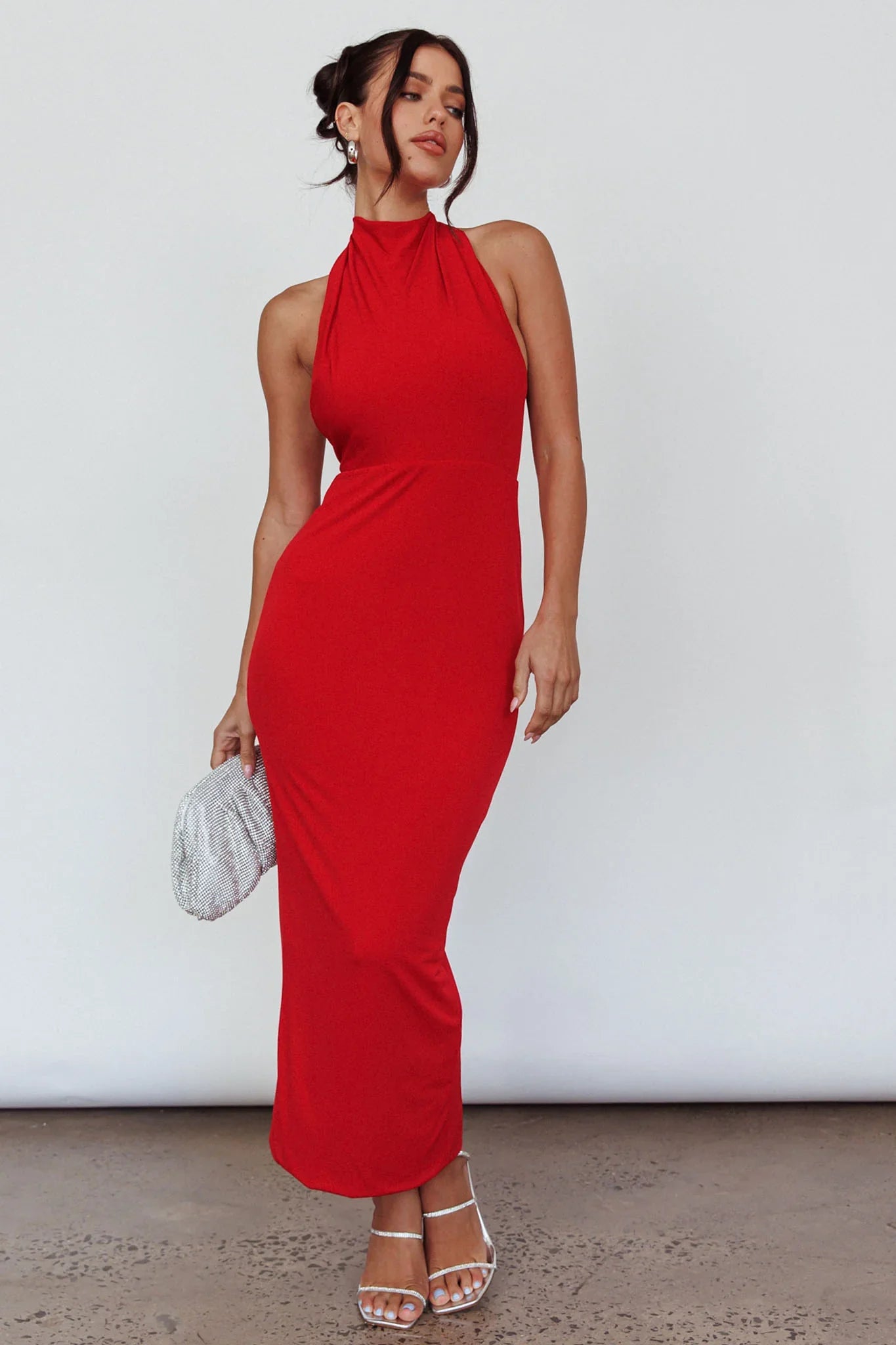 Steal the spotlight in our gorgeous Caden midi dress. Featuring a sexy, open back and halter neckline. It's perfect for a fun girls' night out teamed with strappy, tie up heels and a saddle bag.