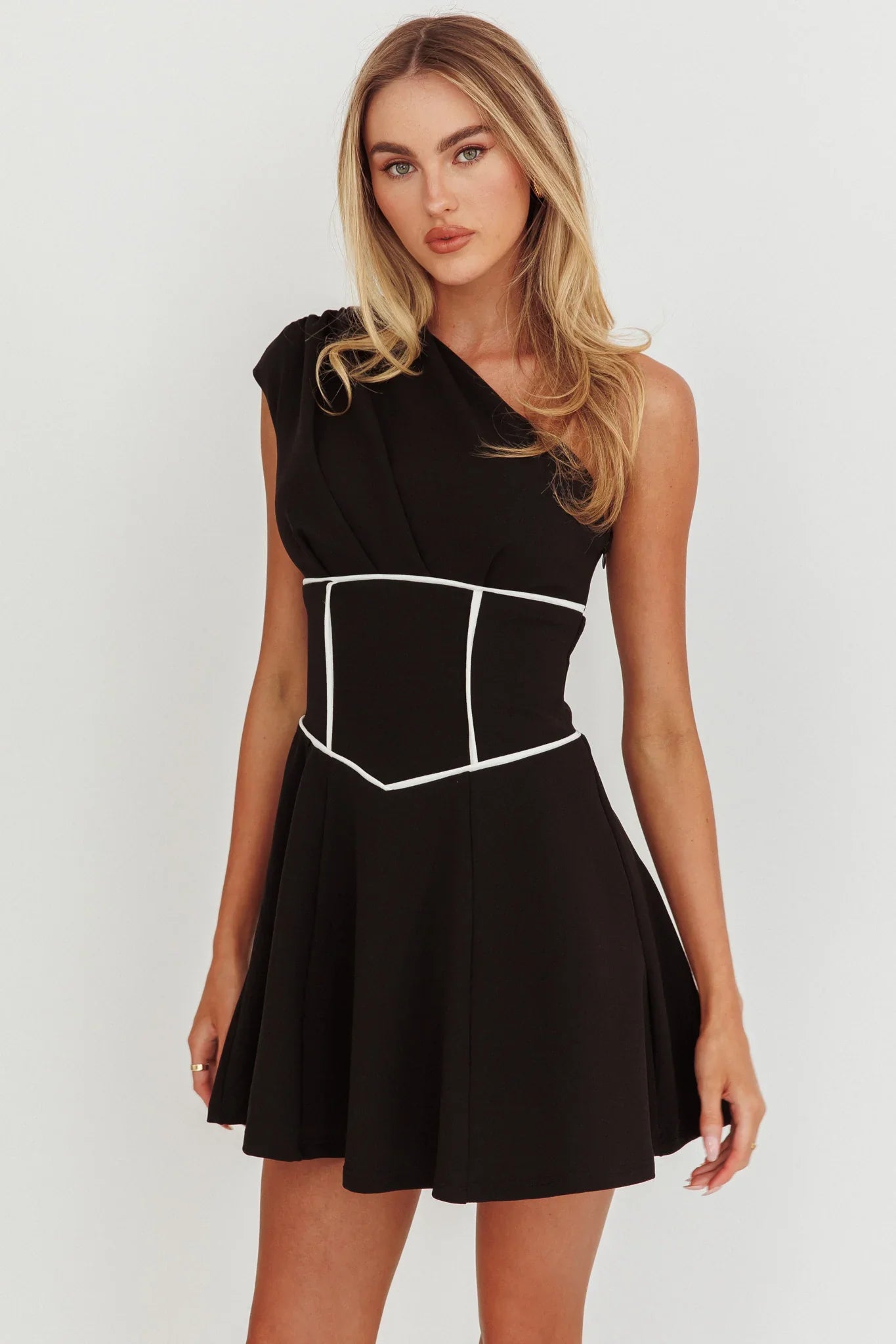 Make them stop and stare in our Carissa mini dress. It features a one-shoulder design and piping trim and is perfect for a wedding or special occasion birthday celebration. Team it with strappy, tie-up heels and a clutch for an unforgettable look we are loving.