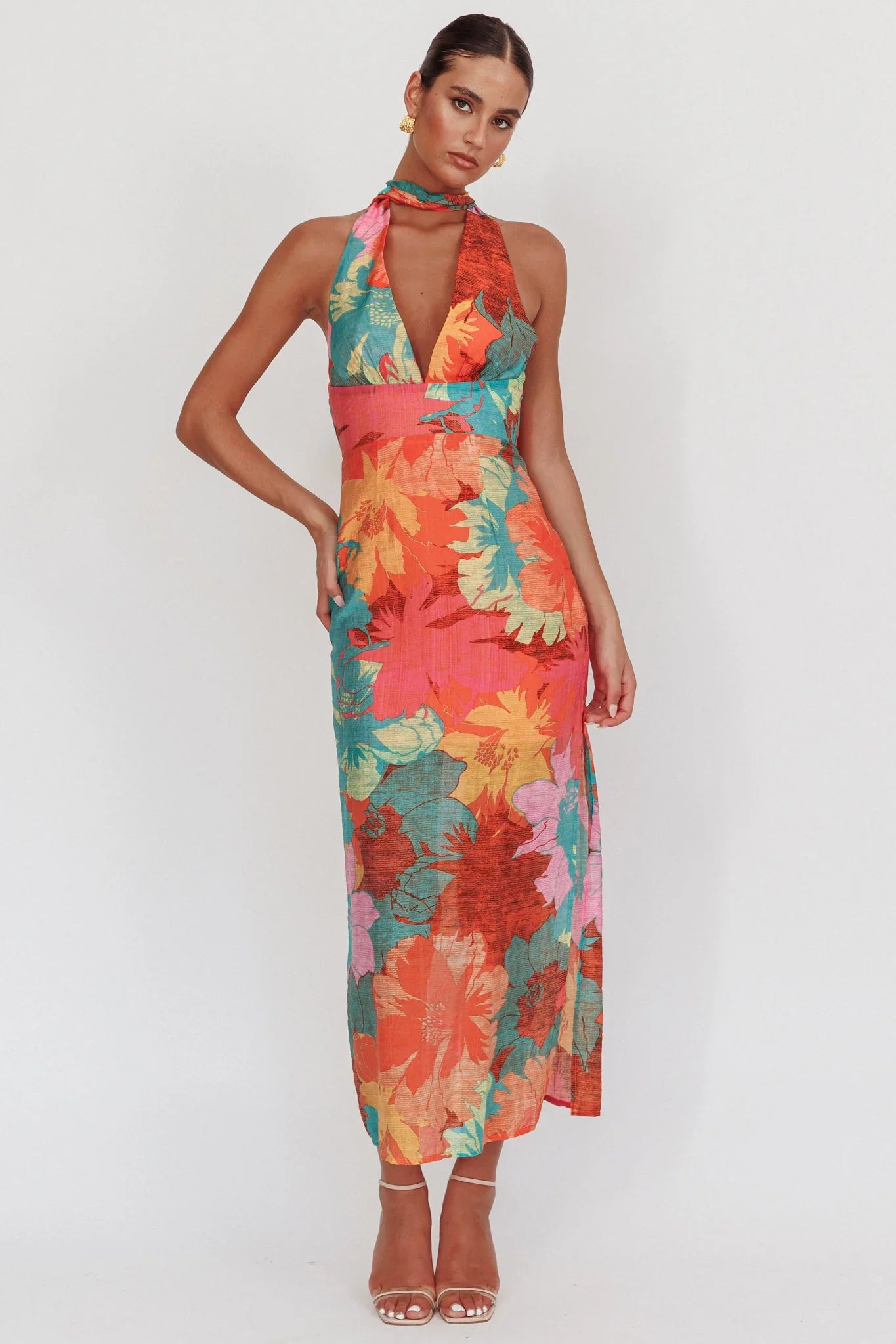Steal the show in our gorgeous Cipriana maxi dress. It features a halter design and a low back and is perfect for a girls' night out, sipping cosmos and laughing 'til it hurts! Team it with nude heels and a hobo bag for an unforgettable look.