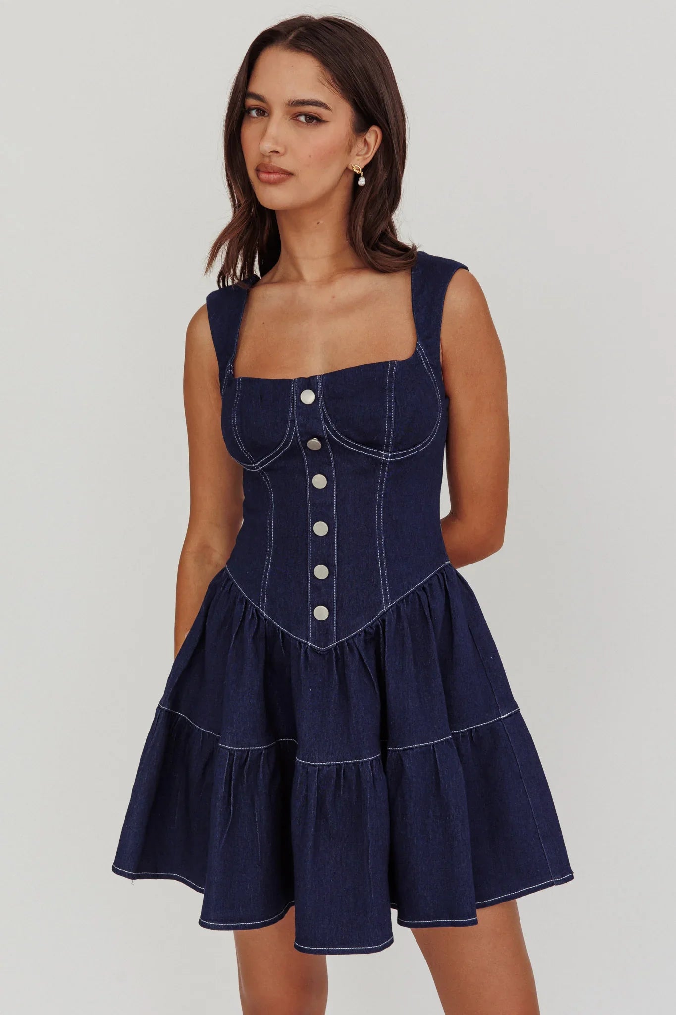 Be bold in our Deep Dive mini dress! This dress is the epitome of contemporary chic! It features a square neckline and an adorable, flared gathered skirt. Take your look to the next level by accessorizing with your favorite jewelry!