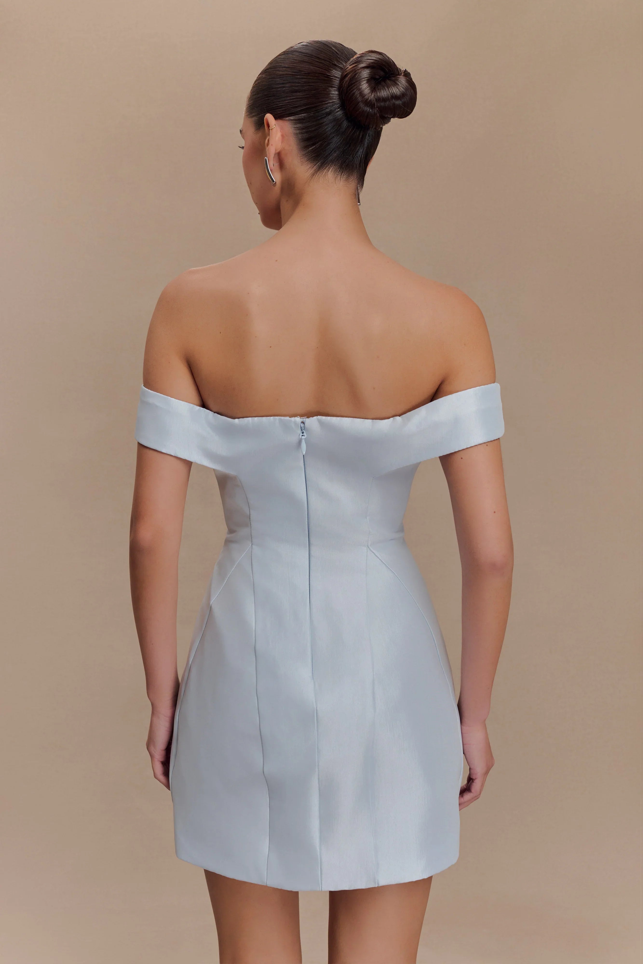 Step out in style with the DIANA Off Shoulders Mini Dress, a captivating blend of elegance and charm. Featuring a flattering Bardot neckline that beautifully highlights the shoulders, this dress boasts a fit-and-flare silhouette designed to accentuate your shape. The mini length adds a playful touch, while delicate panelling detail and structured bust cups provide a perfectly contoured fit. Finished with a centre-back zip for easy wear, this dress is your new go-to for any occasion that calls for a hint of romance and flair.