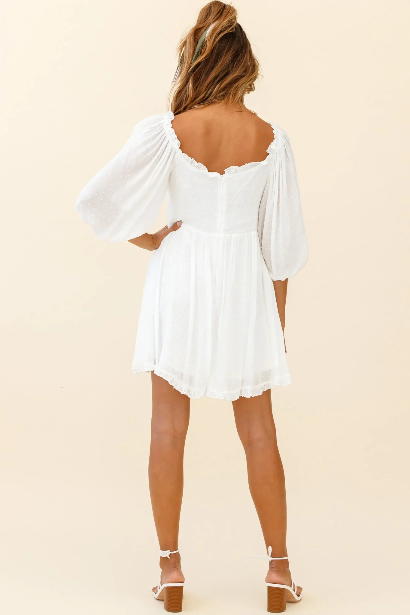 You'll look like an angel in our adorable Dream Lover dress. Featuring the sweetest puff sleeves and pretty crochet trim details. Perfect for a champagne brunch with your besties. Team it with neutral tie-up heels and a tote for a look we are loving.