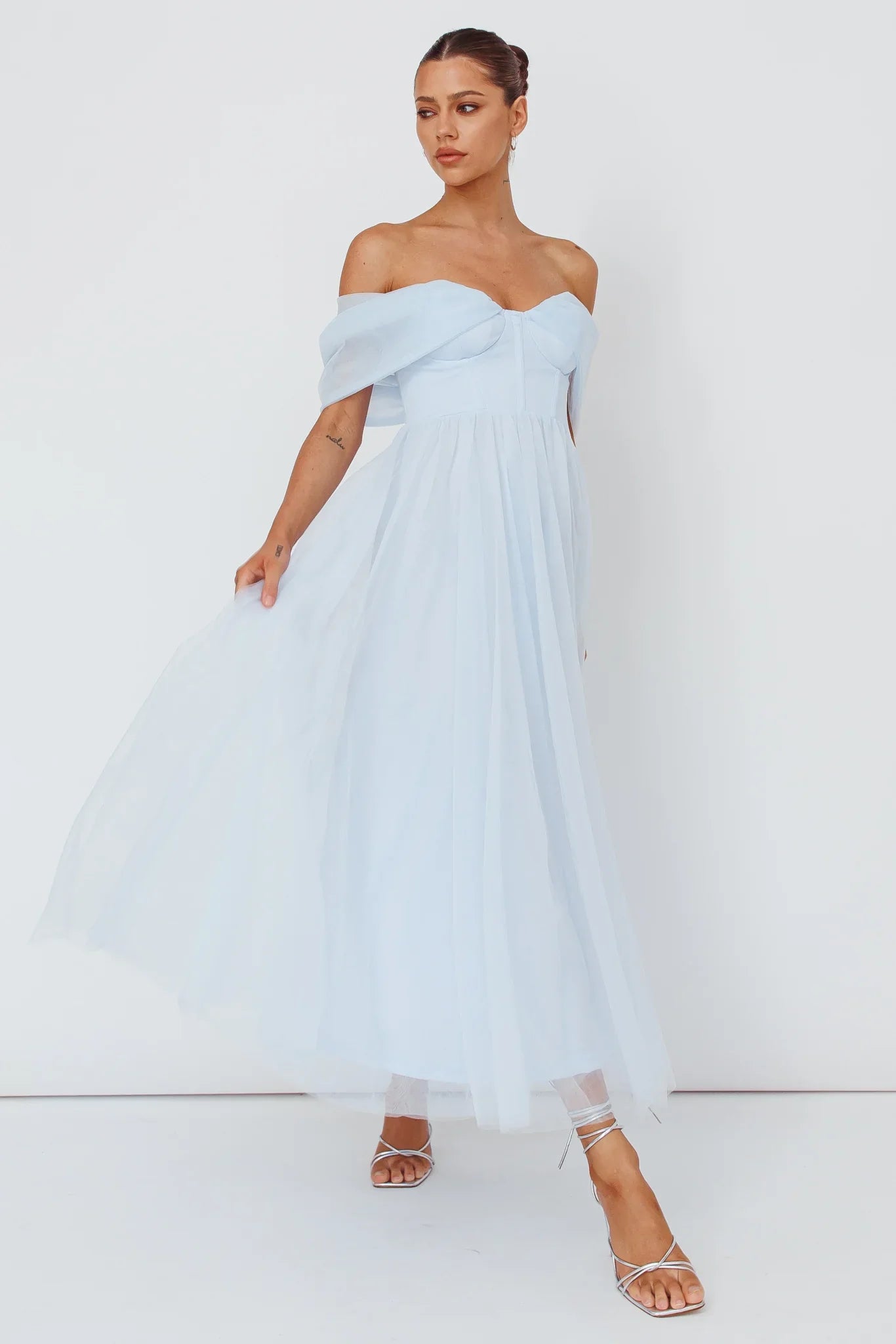 You'll feel like a princess in our gorgeous Dreamers & Lovers maxi dress. We are in love with its feminine, off-shoulder style and romantic chiffon. Perfect for a wedding or prom! Team it with strappy, tie-up heels and a clutch for a look that's fit for royalty.