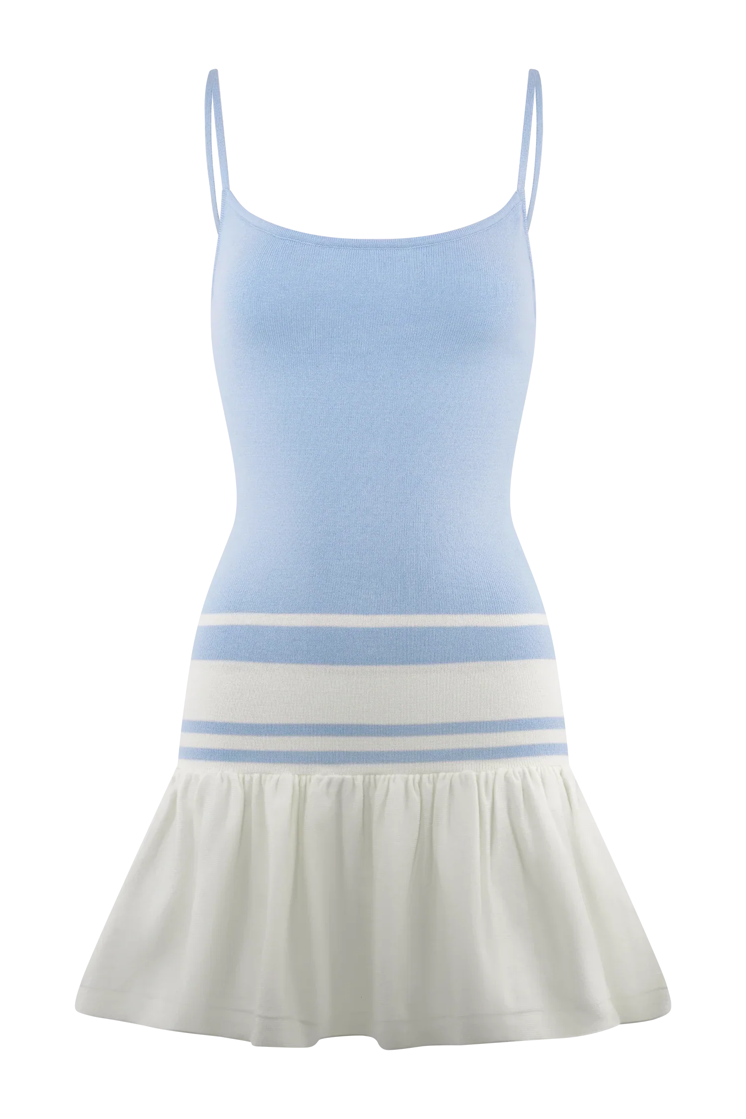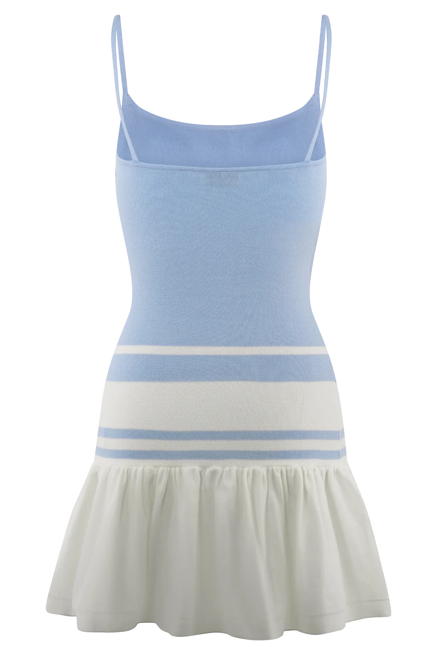 The ELLISON Contrast Knit Mini Dress is your go-to for flirty, fun styling with a modern twist. Featuring a scoop neckline and striking back cross-strap detail, this fitted silhouette hugs the body before flaring into a frilled lower skirt. Bold contrast stripe detailing adds a graphic edge, while the unlined knit keeps it light, breathable, and ready for warm-weather days. this dress is perfect for weekend plans, sunlit strolls, and everything in between.