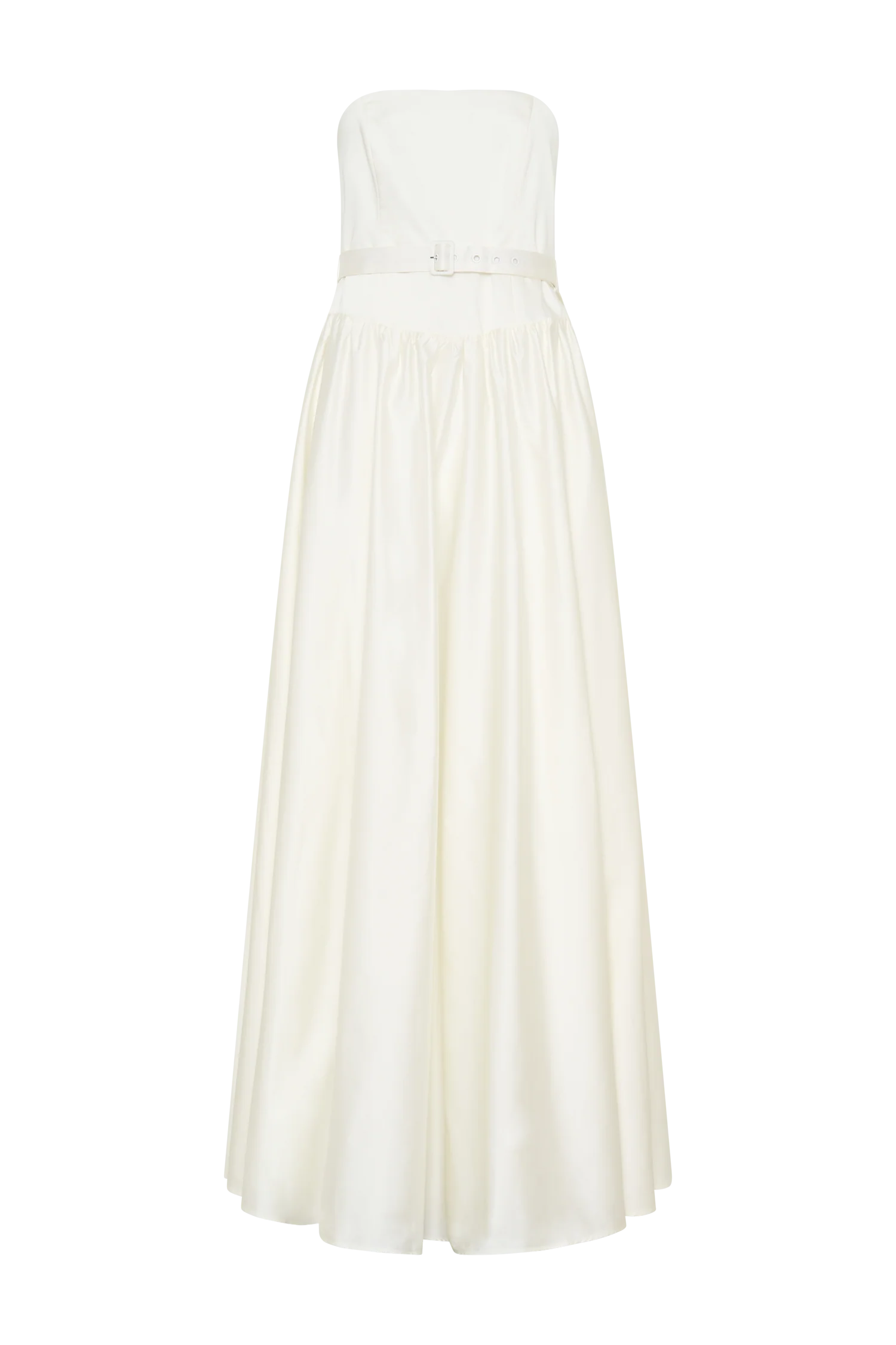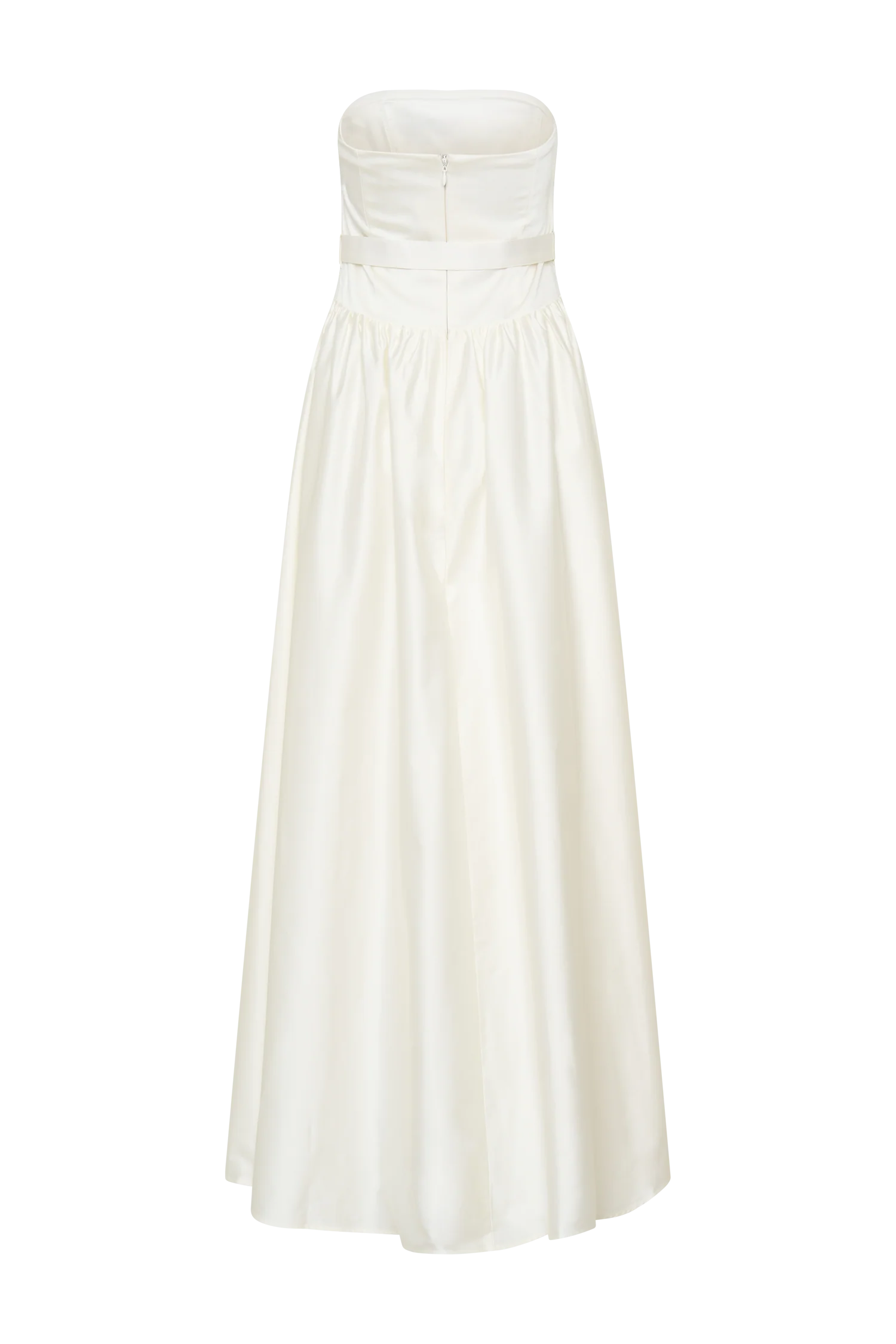 The FLORENCE Strapless Belted Maxi Dress is the epitome of effortless elegance. Designed with a sleek strapless neckline and a flattering drop waist, this silhouette elongates the frame while exuding timeless sophistication. The gathered waist and full skirt create graceful movement, while the matching waist belt cinches for a perfectly defined shape. Fully lined for comfort and finished with a center-back zip and hook-and-eye closure, this dress is a dreamy choice for special occasions, romantic evenings, or modern bridal moments.