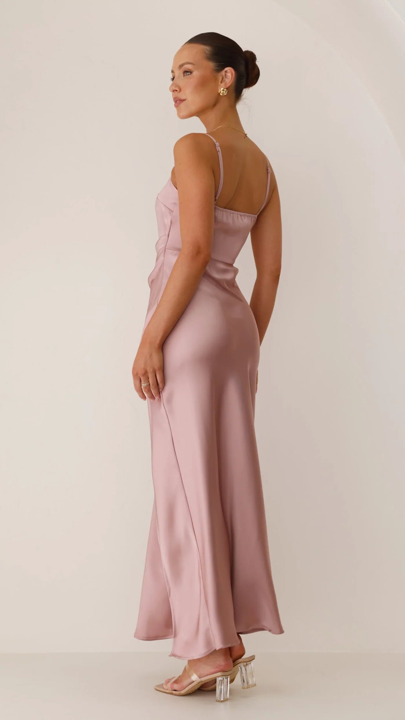 All eyes on you in our Ilana Maxi Dress. This simply elegant dress features a straight neckline, thin adjustable straps, leg split and subtle pleat detailing on waist. This style pairs beautifully with nude heels and dainty jewellery to achieve a beautifully finished look.