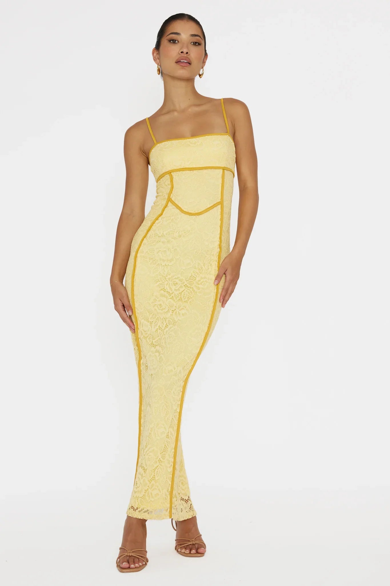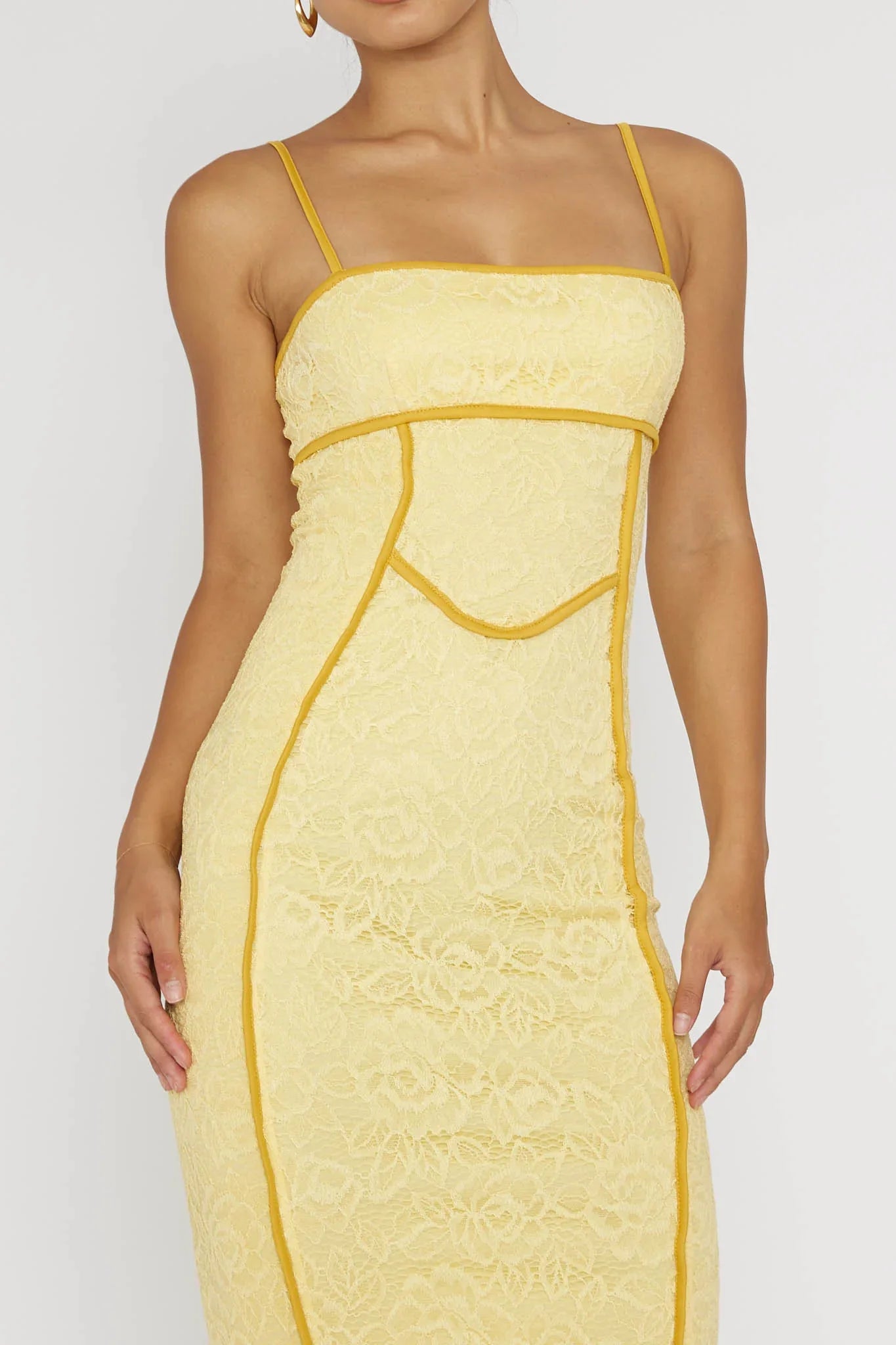 Turn heads in our Inga midi dress. Featuring a lace fabric throughout and contrasting piping trim detail. It's perfect for a glam girls' night out or a special occasion. Team it with nude heels and a saddle bag for an unforgettable look.