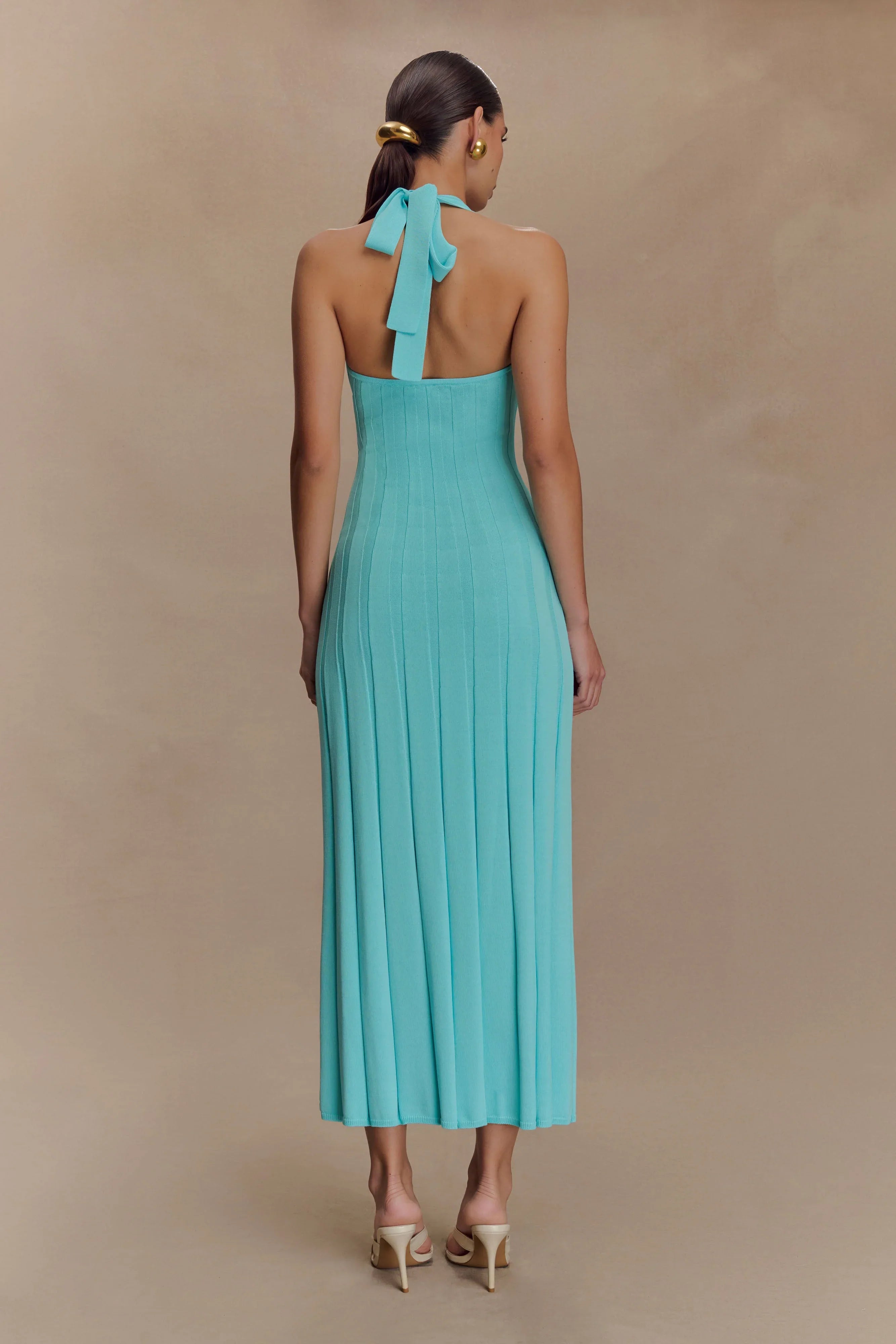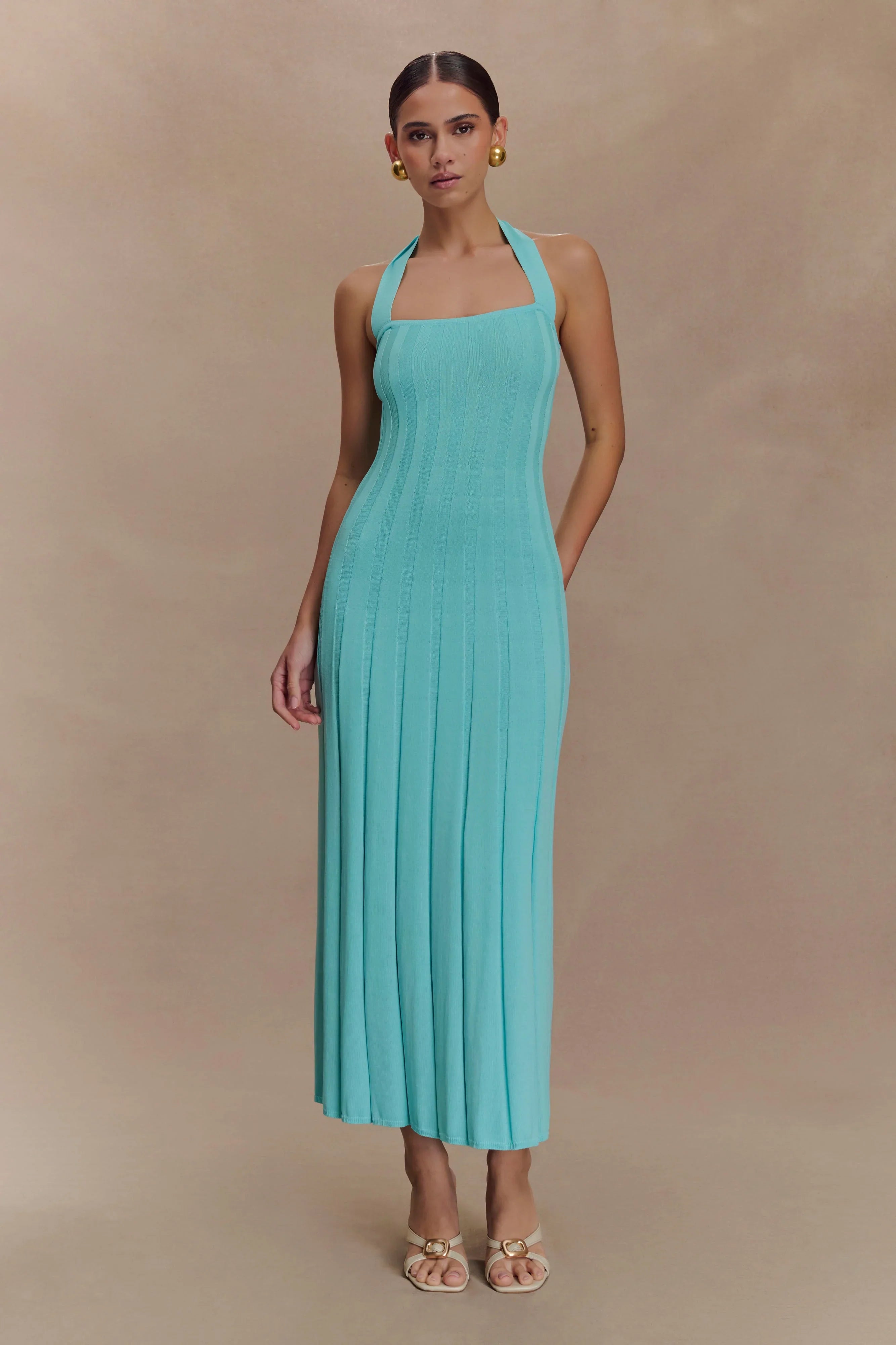 The JACQUI Halter Knit Midi Dress is a refined blend of modern simplicity and feminine charm. Designed with a sleek halter neckline, this dress beautifully elongates the silhouette while offering a timeless, sophisticated look. The ribbed knit fabric provides a figure-hugging fit, while the pleated hem detail adds movement and texture for an elevated finish. Unlined for a lightweight feel, this midi-length dress is perfect for both casual and dressy occasions.