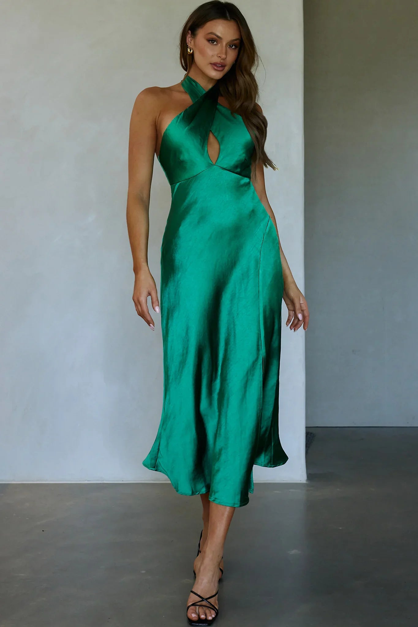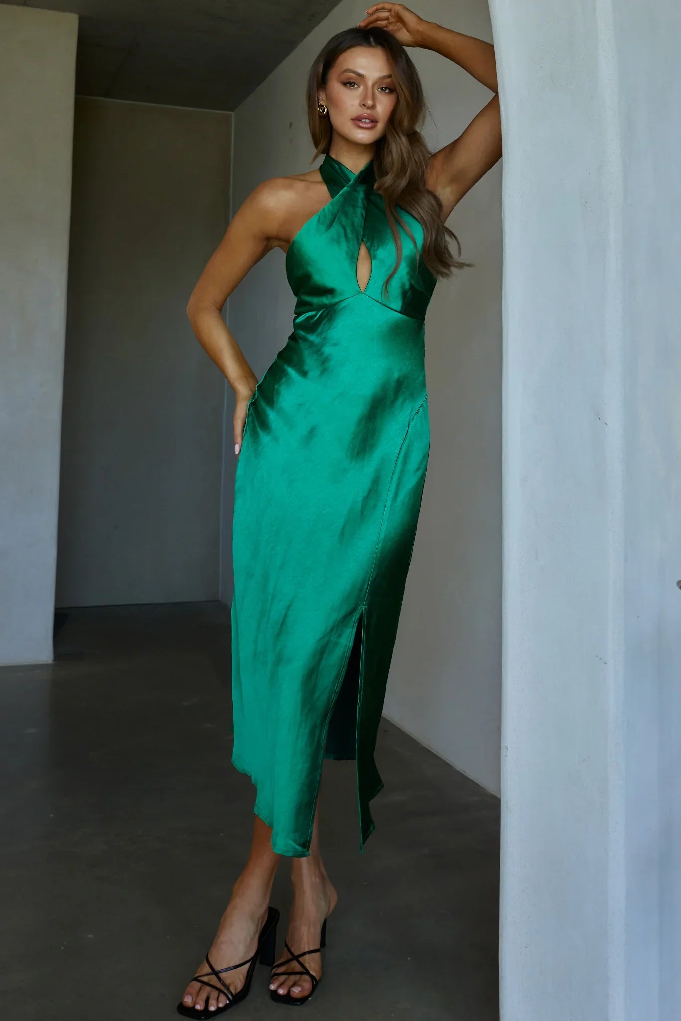 Heads will turn when you walk in the room in our gorgeous Je Reve dress. Featuring a chic halterneck style and sexy, front split. It's perfect for a wedding or birthday celebration. Team it with mules and a clutch for a look we are loving.