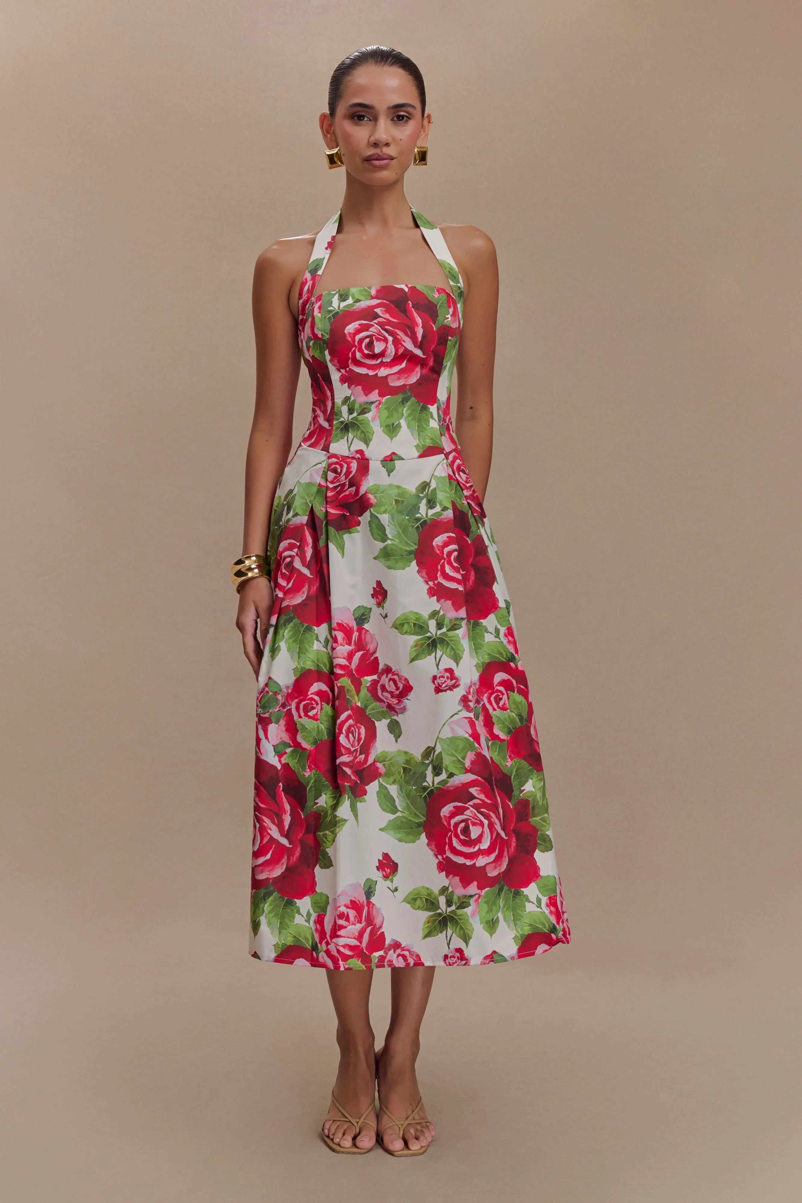 Step into timeless sophistication with the JUANA Halter Midi Dress, a graceful design that exudes femininity. Featuring a flattering halter neckline and a rounded waistline, this dress beautifully highlights your silhouette. The front and back skirt pleats add movement and texture, enhancing its refined charm. Designed in a chic midi length with a discreet side zip for easy wear, this dress is perfect for weddings, soirées, or any occasion where effortless elegance is key.