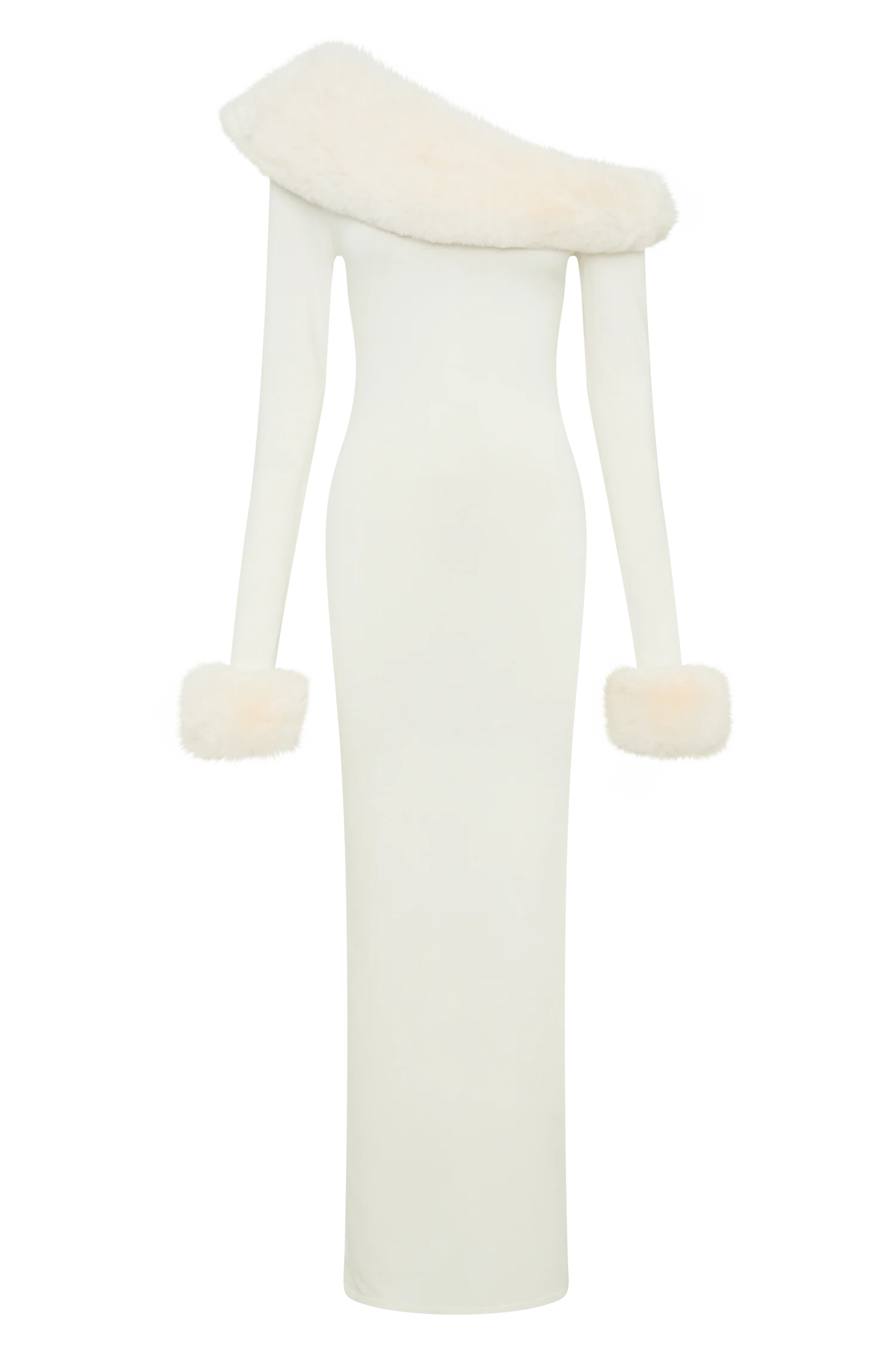 The KARLEIGH Faux Fur Knit Maxi Dress is a luxurious blend of cosy elegance and contemporary style. Featuring a striking asymmetrical neckline and crafted from soft knit fabrication, this dress offers a figure-hugging bodycon fit that’s both flattering and comfortable. The long sleeves are enhanced with plush faux fur cuffs, while the fur neckline adds an extra touch of warmth and sophistication. With its maxi length and sleek silhouette, this dress is the perfect choice for a chic evening out or any event where you want to stand out in style.