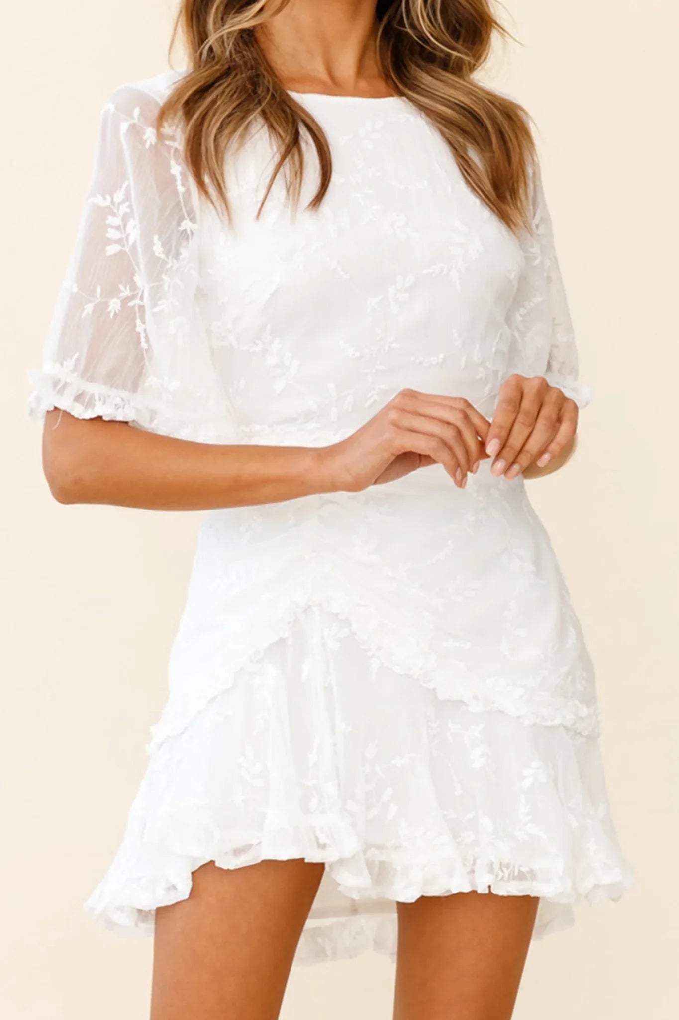 Get ready to go straight to the best-dressed list in our adorable Leona dress. Featuring gorgeous floaty sleeves and frill inserts to give it a girly twist. Perfect for the office or your fav happy hour teamed with mules and a tote. Super cute!