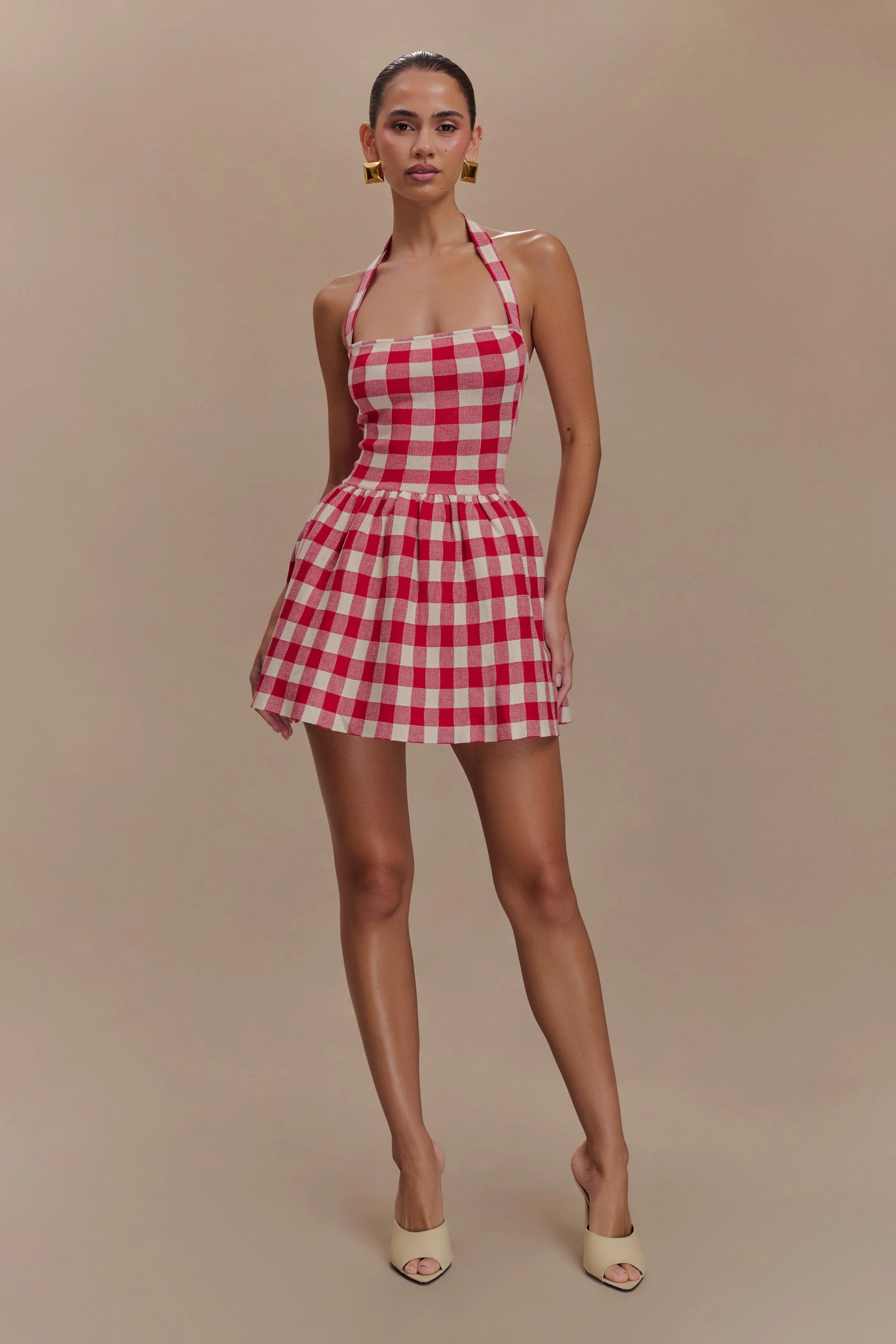 The LINDSAY Halter Knit Mini Dress combines bold structure with delicate details for a chic and playful look. The halter neckline and fitted bodice create a sleek, flattering silhouette, while the gathered skirt with a tulle underlay adds volume and movement. Designed with a mini length and a fitted knit construction, this dress is both comfortable and stylish, making it perfect for any occasion. With its combination of bold lines and soft, flowing elements, this dress is sure to turn heads wherever you go.
