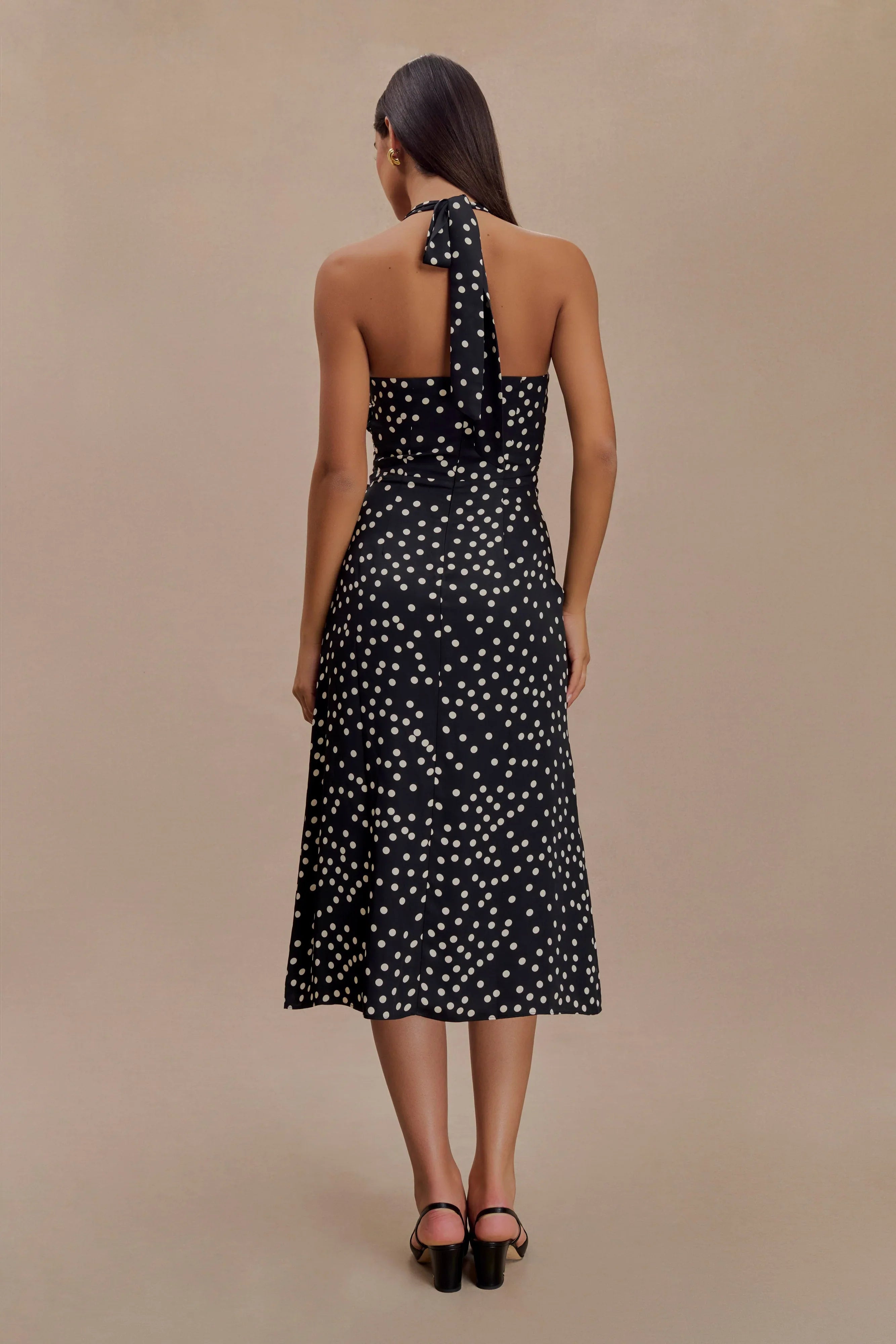 The MARGUERITE is a timeless halter dress designed to beautifully frame your shoulders. With ruched detailing at the underbust and waist panel, this dress offers a figure-enhancing silhouette that accentuates your curves in all the right places. We have also incorporated a centre front tie detail allowing you to customise the fit to your liking. Pair with the to complete the look.