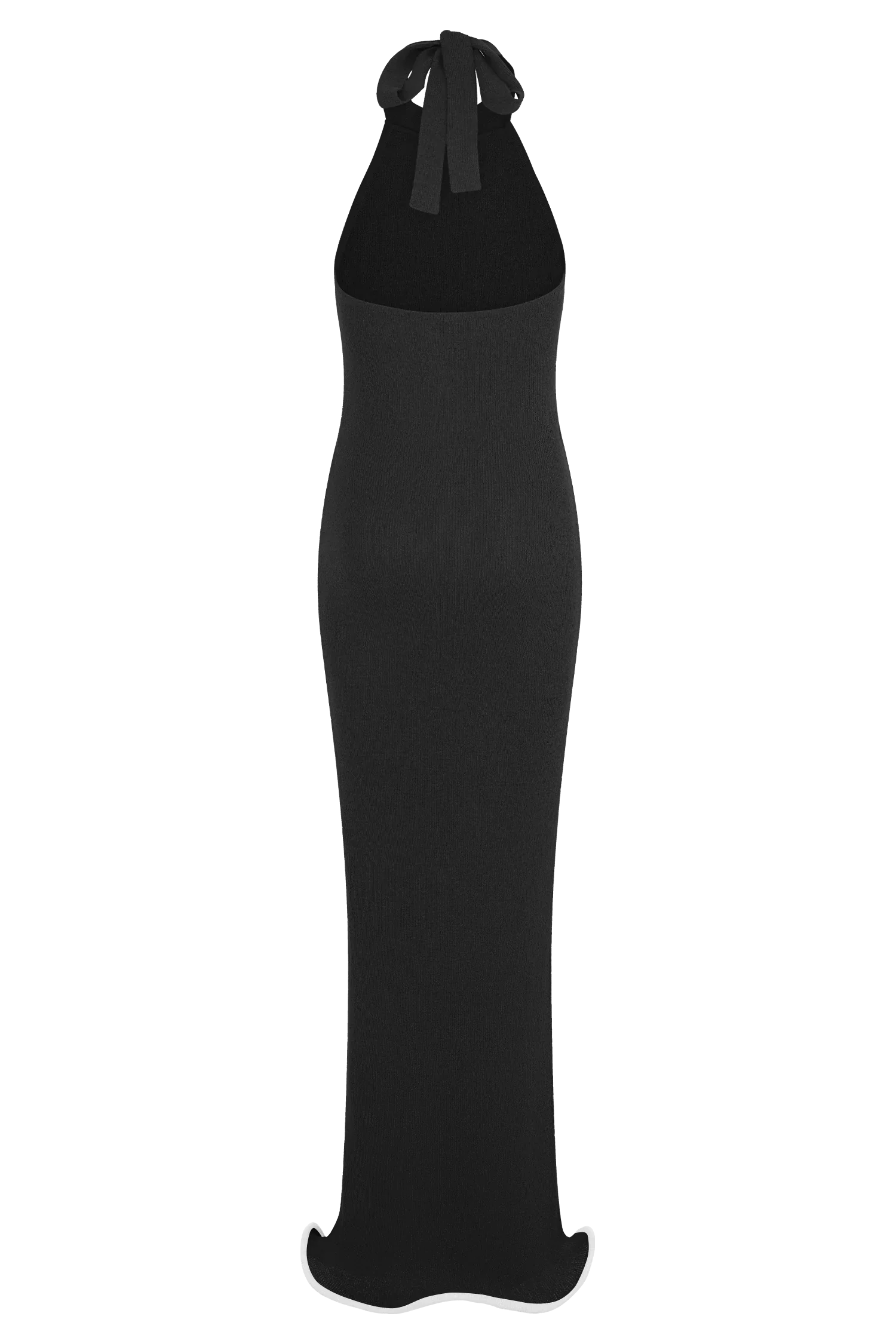 The MELODIE Halter Knit Maxi Dress is the perfect combination of sophisticated elegance and effortless charm. Featuring a flattering halter tie neckline, this dress offers a customisable fit that accentuates your shoulders and neckline. The open back adds a touch of allure, while the fitted silhouette hugs your curves in all the right places for a stunning look. With a maxi length, it exudes graceful movement, and the ripple hem detail adds an unexpected, chic touch.