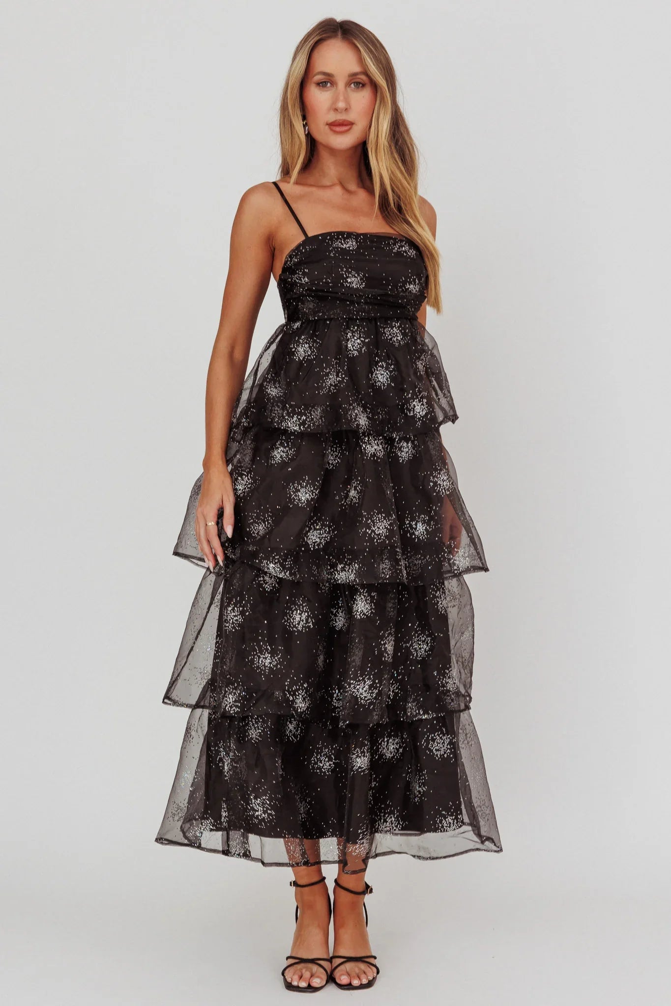 You were born to stand out in our stunning Morina maxi dress. Featuring gathering detail in the top and tiered chiffon throughout. It's perfect for homecoming or a special event. Team it with strappy, silver heels and a clutch for a look that will light up the room.