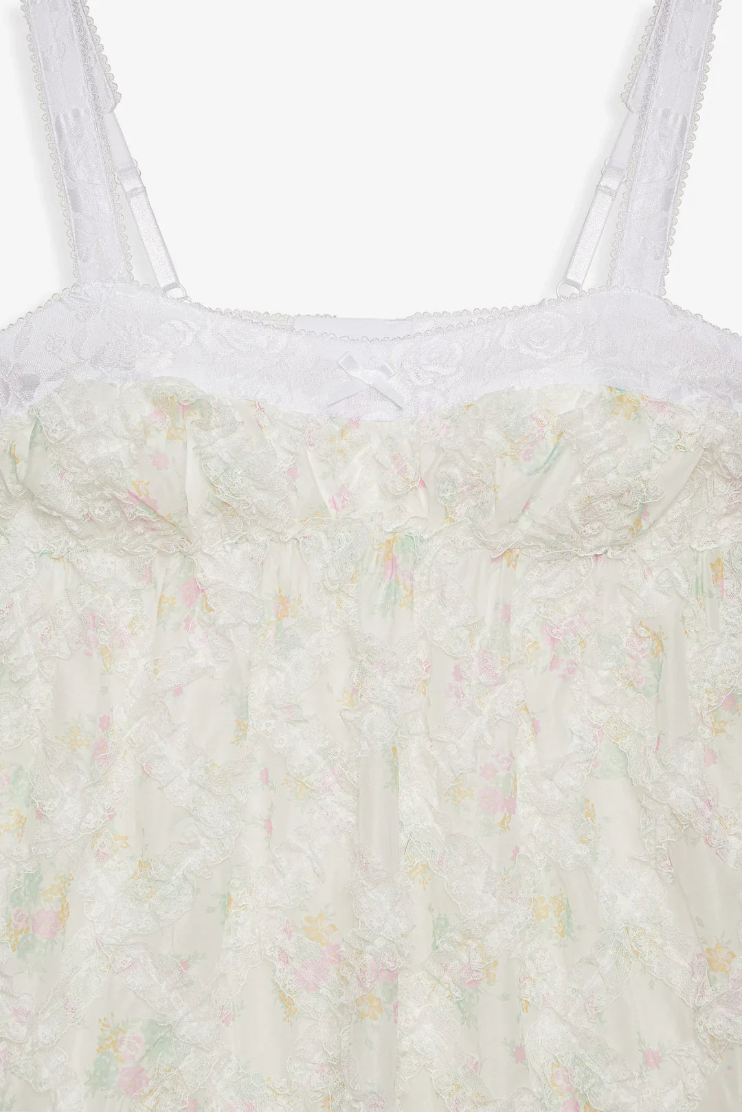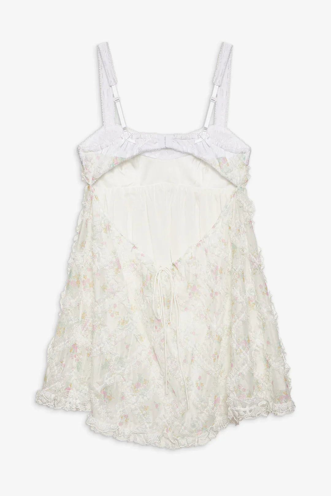 Crafted in floral printed gauze with lace trims—the Nova white mini dress is an ultra-special babydoll dress that's suited to equally special moments. It features an exposed stretch lace bra that gives way to an empire waist and a full gathered skirt.