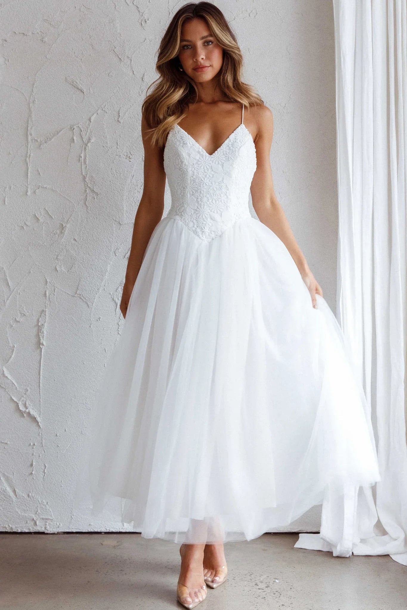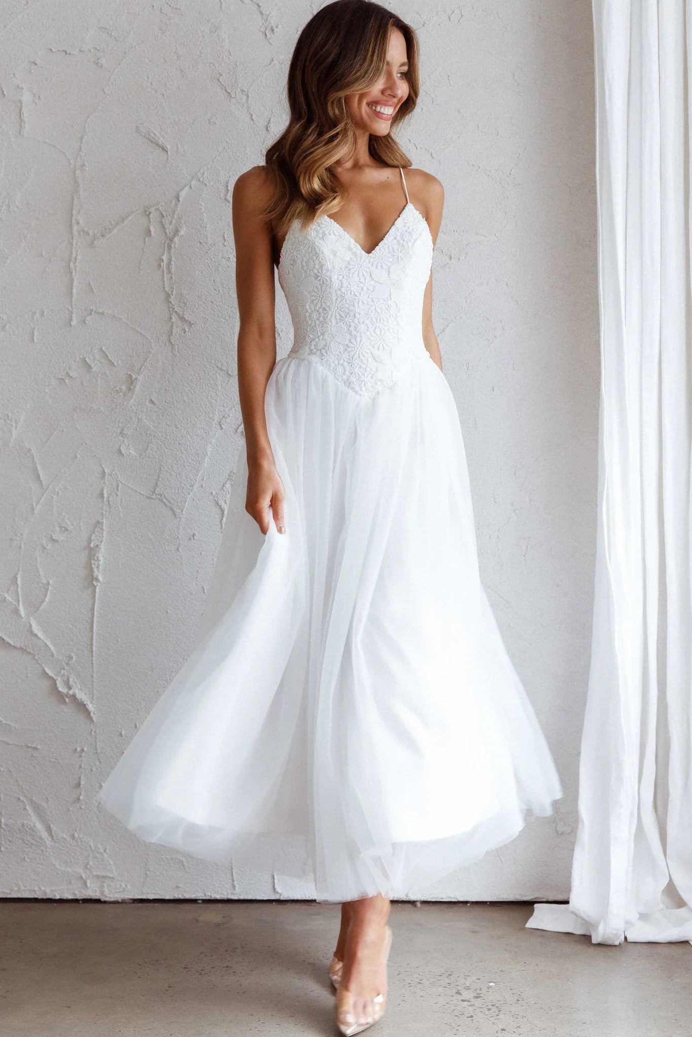 Make a grand entrance in our stunning Novoli midi dress. We are in love with its floral embroidery in the torso and elegant silhouette. Perfect for a wedding or prom teamed with tie-up heels and a satin clutch for a look that's fit for a princess.