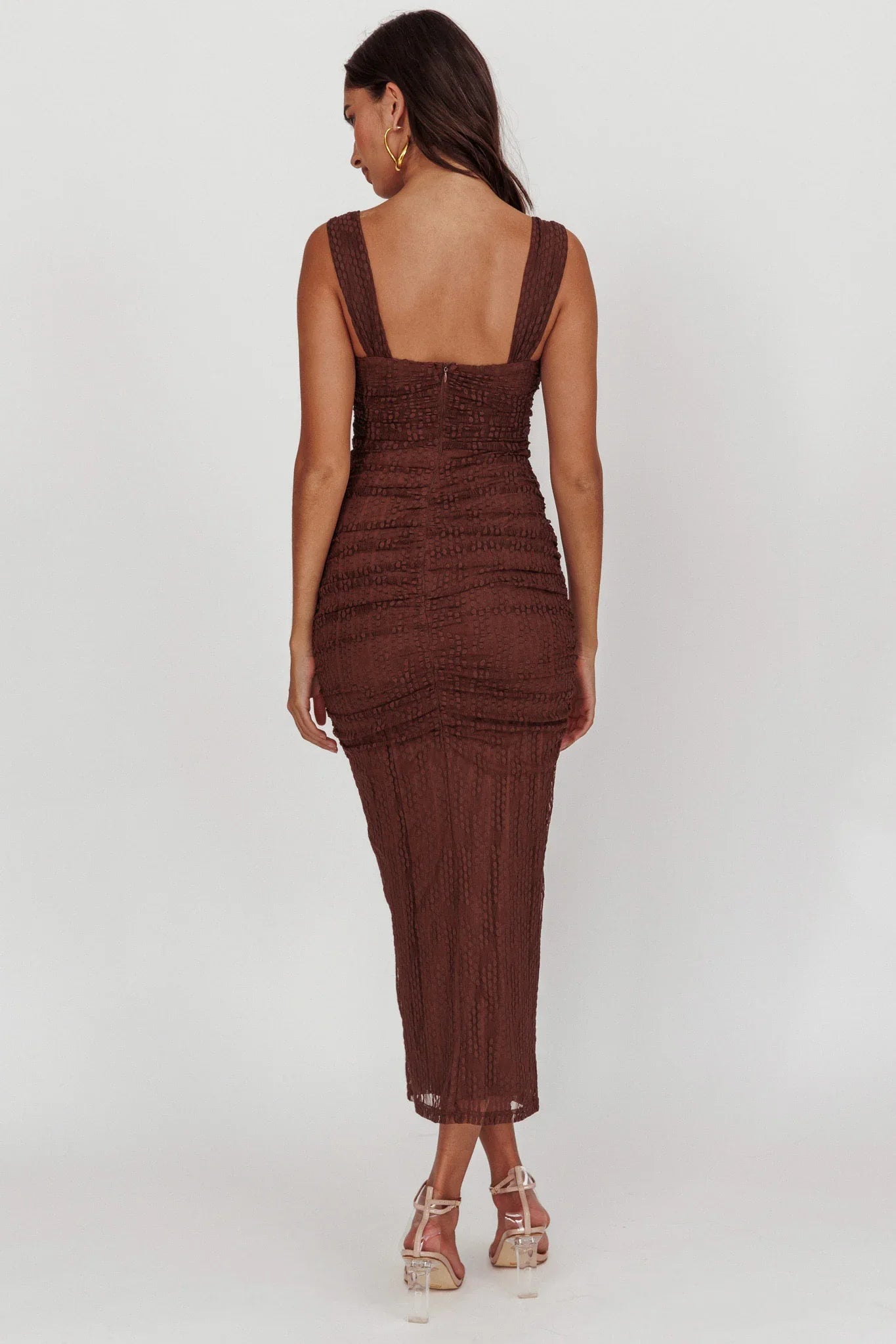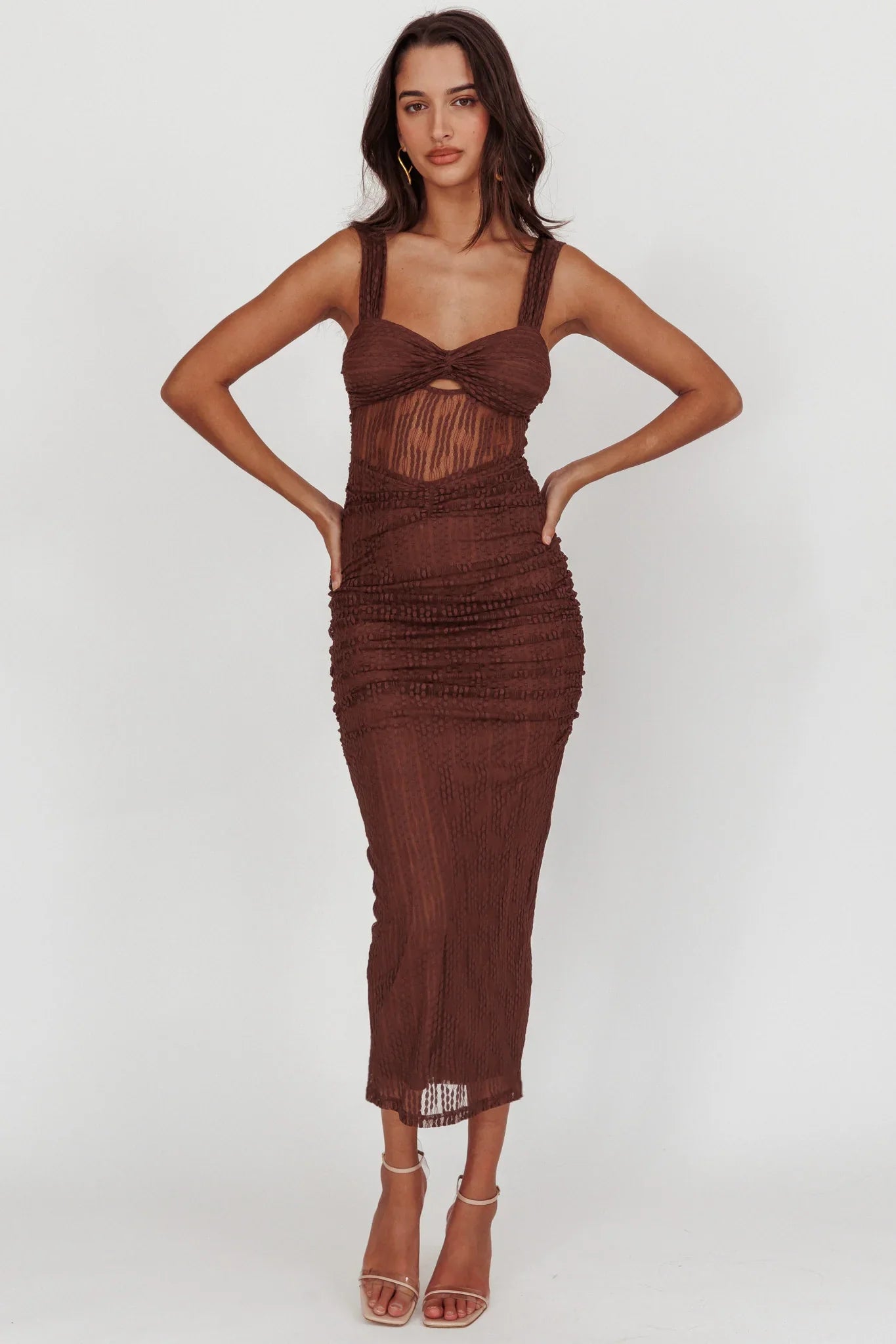 Make an entrance in our gorgeous Oliana midi dress. We are in love with its embroidered mesh overlay and ruching detail. Perfect for a romantic date night teamed with strappy heels and a clutch.