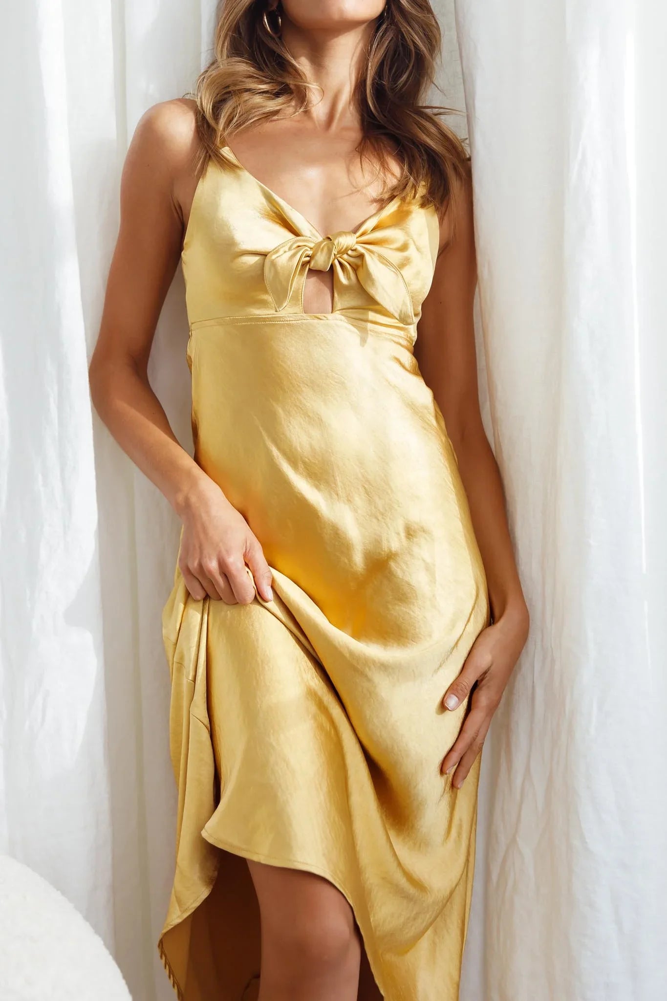 This romantic dress is giving us all the feels. Featuring lightweight, silky fabric that skims your body, super cute tie-detail bust and adjustable straps. Team it with tan sandals for a casual look or dress it up with heels and gold hoops. It's the perfect midi dress for a perfect day.