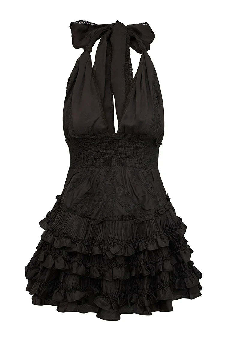 Introducing the Quintelle Dress. Our must-have mini of the season returns with a chic viscose fabric. A revamped version of our best-selling Deanna Dress, the Quintelle is a Victorian-inspired mini with intricate lace details all over. The dress has an elastic waistband making for easy wear, a smocked waist that releases into a flirty skirt with textured micro pleats and tiny ruffles.