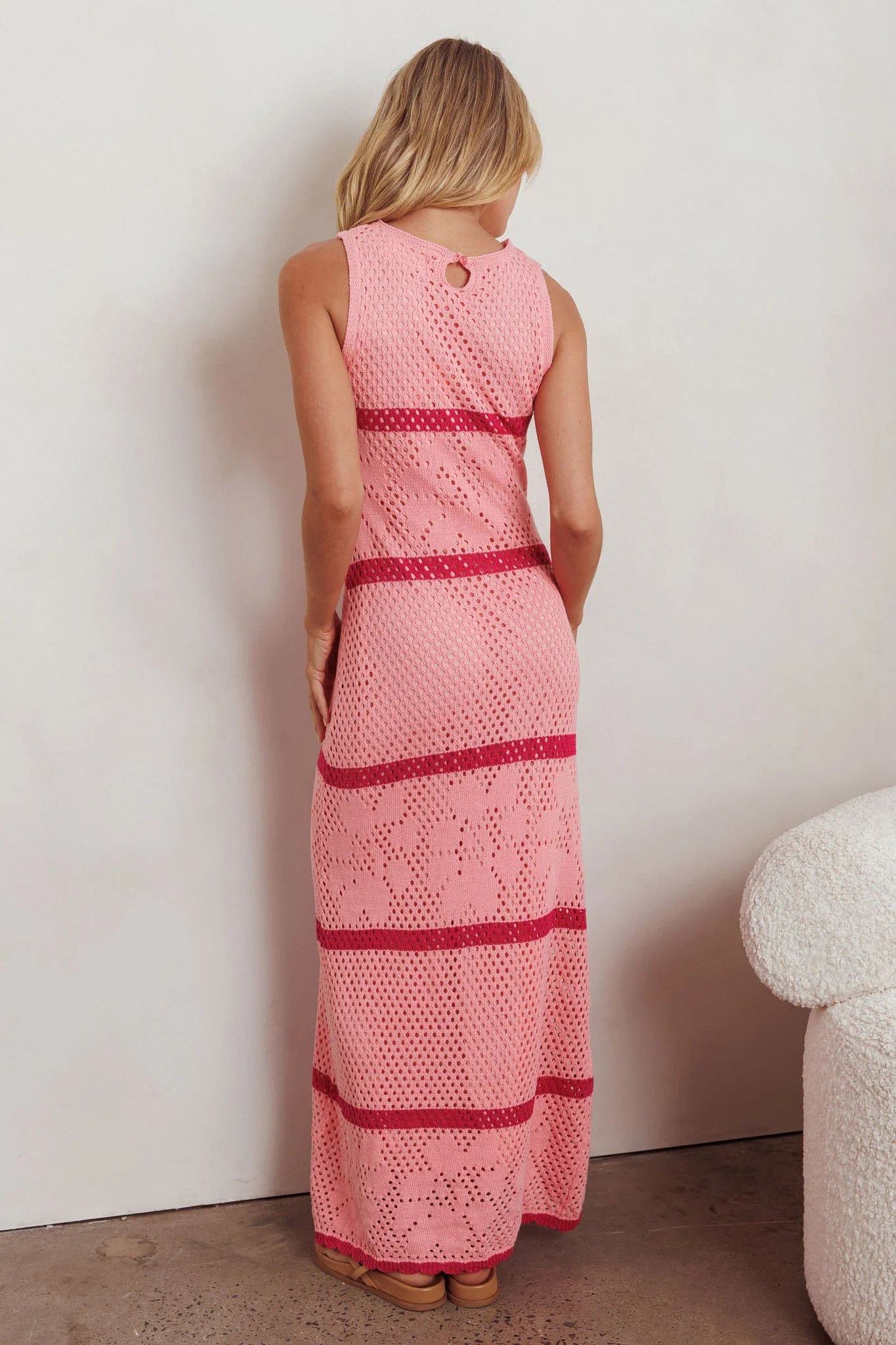 Breeze through your day in our chic Ronnie maxi dress. It features a crochet knit and pretty stripe design and is perfect for Saturday brunch dates with your girls. Team it with sandals and a tote for a stylish look we are loving.