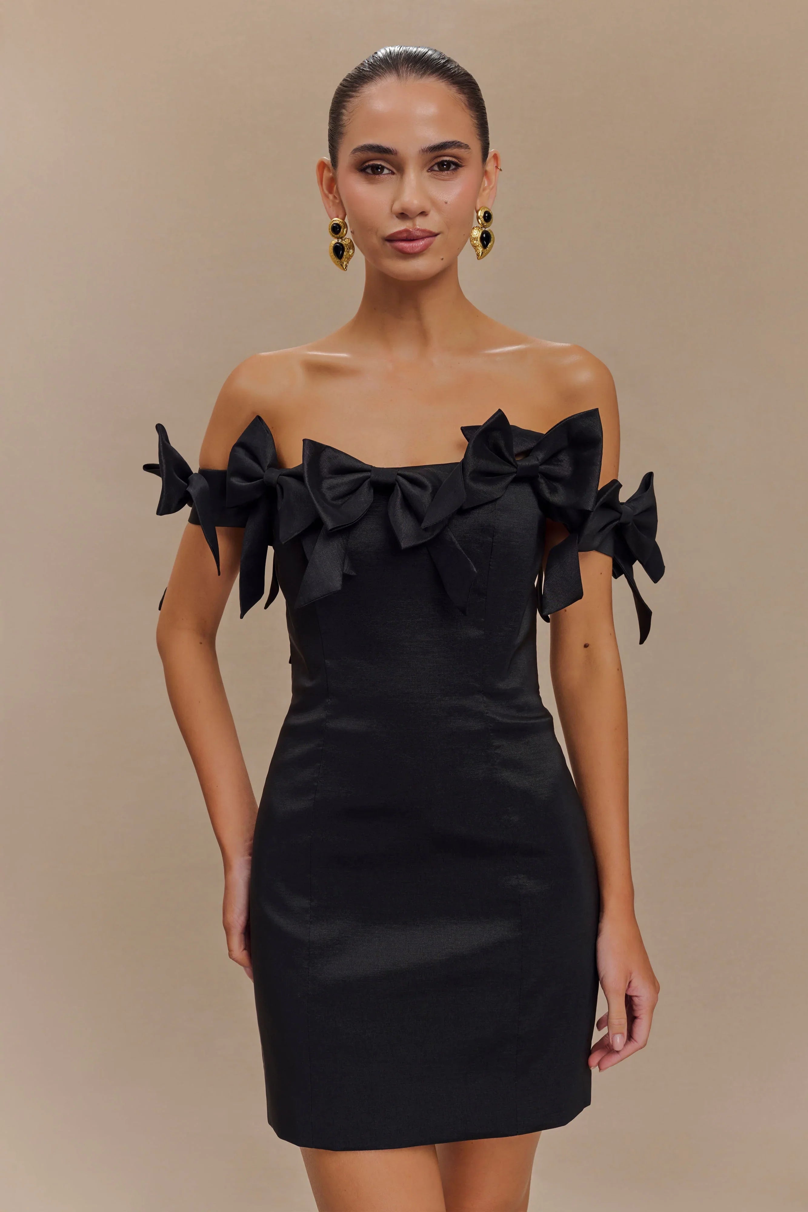 The ROSE Strapless Bow Mini Dress is a flirty and feminine piece designed to turn heads. Featuring a flattering Bardot neckline, this dress exudes elegant charm with its playful bow detail along the neckline. The A-line silhouette offers a flattering fit, while the mini length adds a youthful and fun vibe to the design. With a centre-back zip for easy wear, this fully lined dress combines comfort and style, making it the perfect choice for a night out or a special occasion. Whether paired with heels or flats, this dress promises a chic and effortless look.