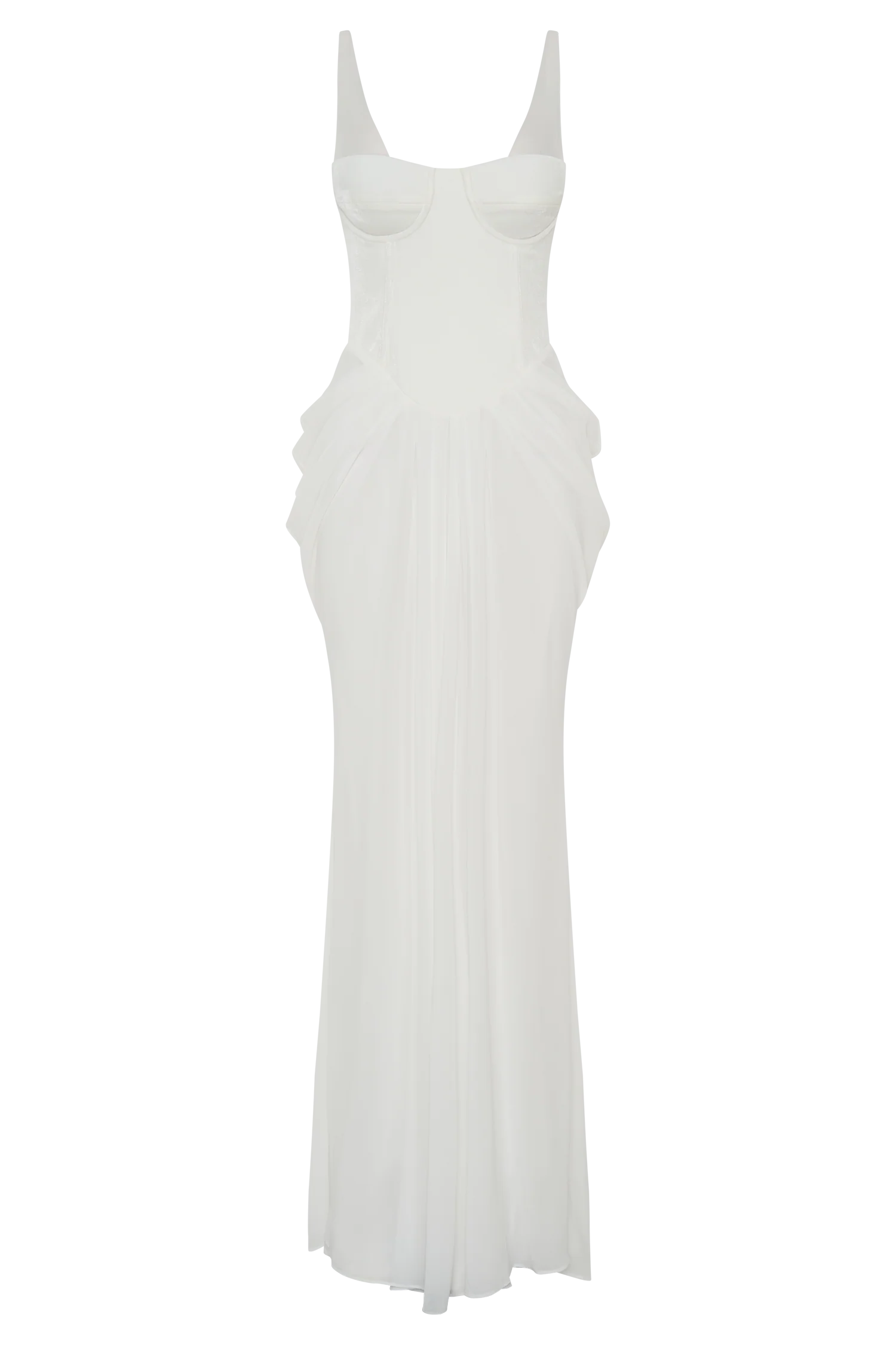 The ROXANNE Velvet Corset Maxi Dress combines timeless elegance with modern sophistication. Featuring a stunning sweetheart neckline and a structured corset bodice, this dress is designed to accentuate your curves and create a flattering silhouette. The velvet fabric offers a luxurious and rich texture. The bodycon fit and invisible back zip closure create a sleek, seamless look, while the maxi-length skirt flows beautifully with every step. Perfect for formal events, this dress delivers drama and allure, making it a show-stopping choice for any occasion.ro