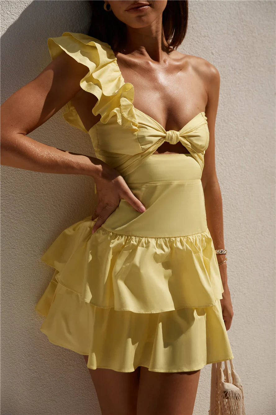 Immerse yourself in the enchanted wonders of world in the Ruffled Out Dress in Yellow, the perfect dress to wear for a romantic getaway. Pair with white strappy heels and sparkling jewellery to adorn.