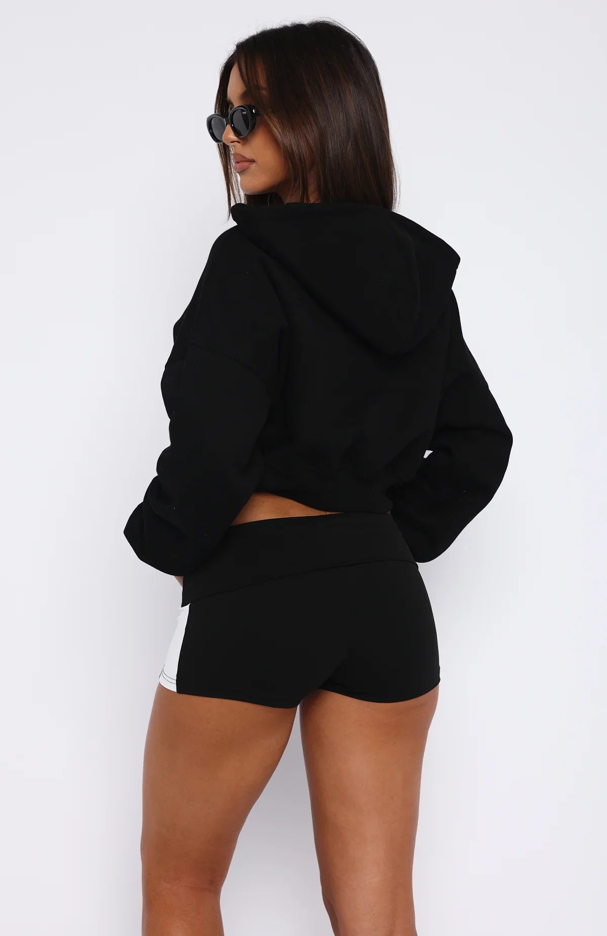 The new best part of your daily ritual: slipping on the She's Effortless Cropped Hoodie Black. Features a cropped length, oversized fit and features elasticated ribbed cuffs & hem, hood, zip fastening, soft fleeced fabric for extra comfort and side front embroidered logo. Complete the look with bike shorts and sneakers for a comfy and cosy look!