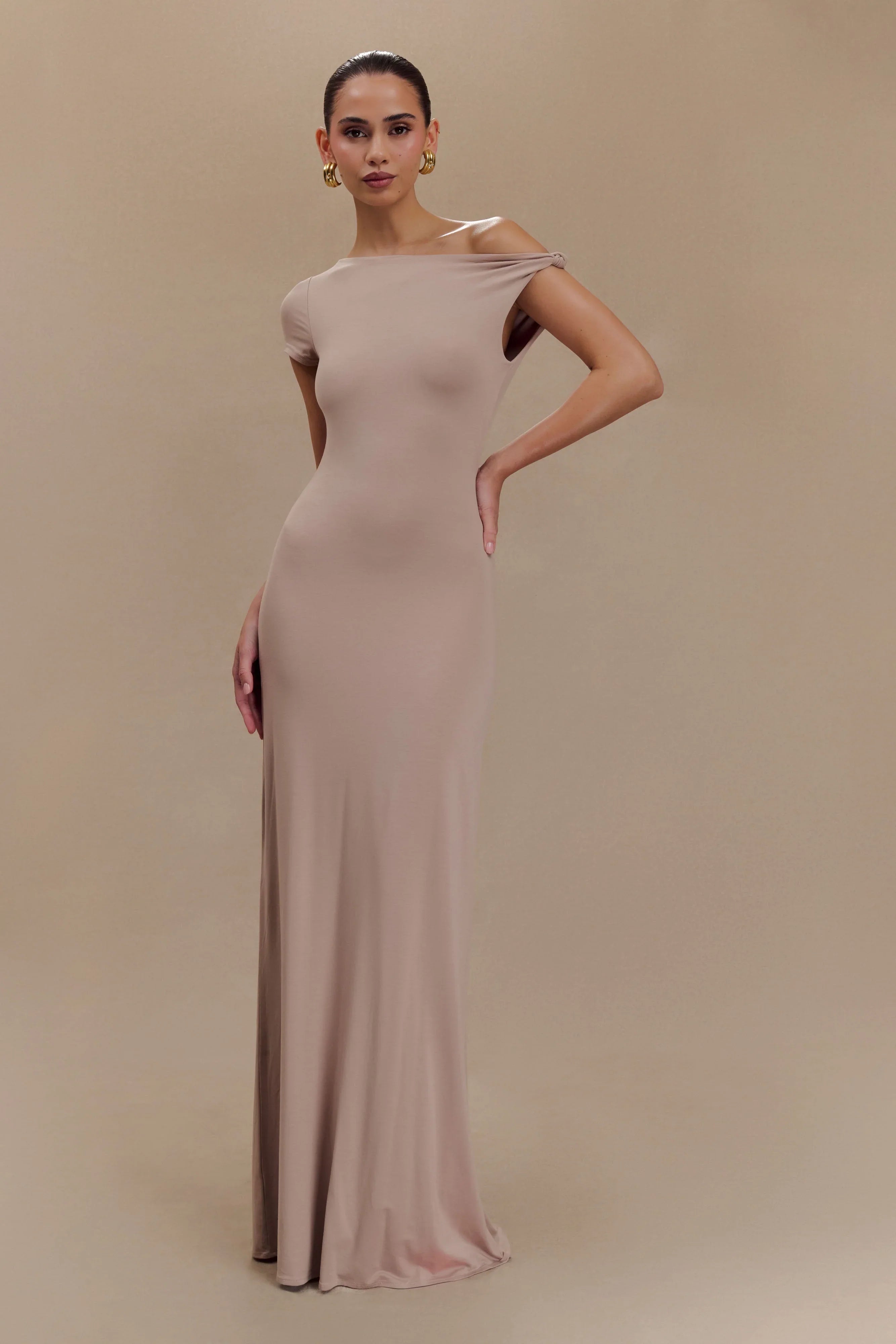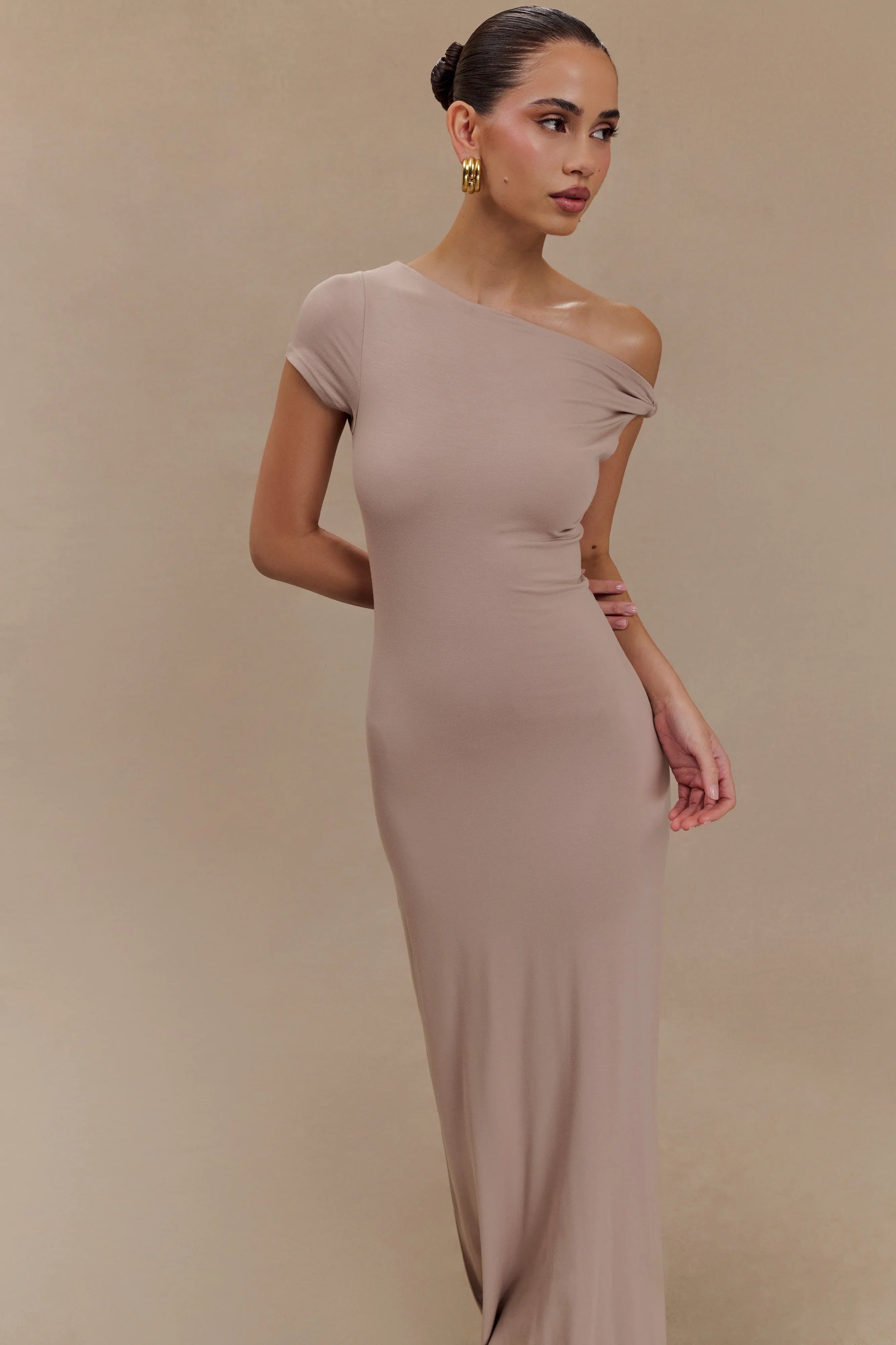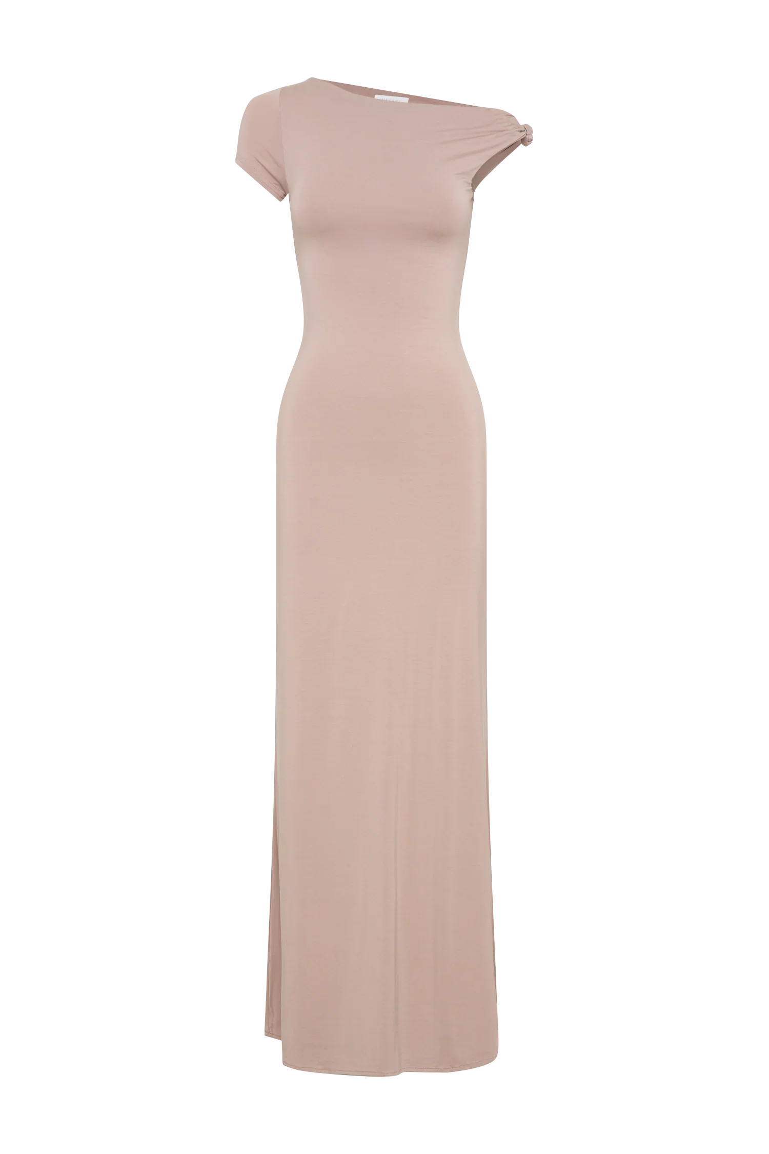 Step out in the TAMSIN Short Sleeve Modal Maxi Dress, a seamless fusion of style and comfort. The maxi length offers a graceful silhouette, while the asymmetrical neckline brings a modern edge. A knotted shoulder detail adds a subtle, chic accent, creating a look that’s effortlessly polished. Crafted from soft modal fabric, this dress ensures all-day comfort with an elevated feel. Perfect for both casual and formal occasions, it’s a timeless piece that makes a refined yet relaxed statement.