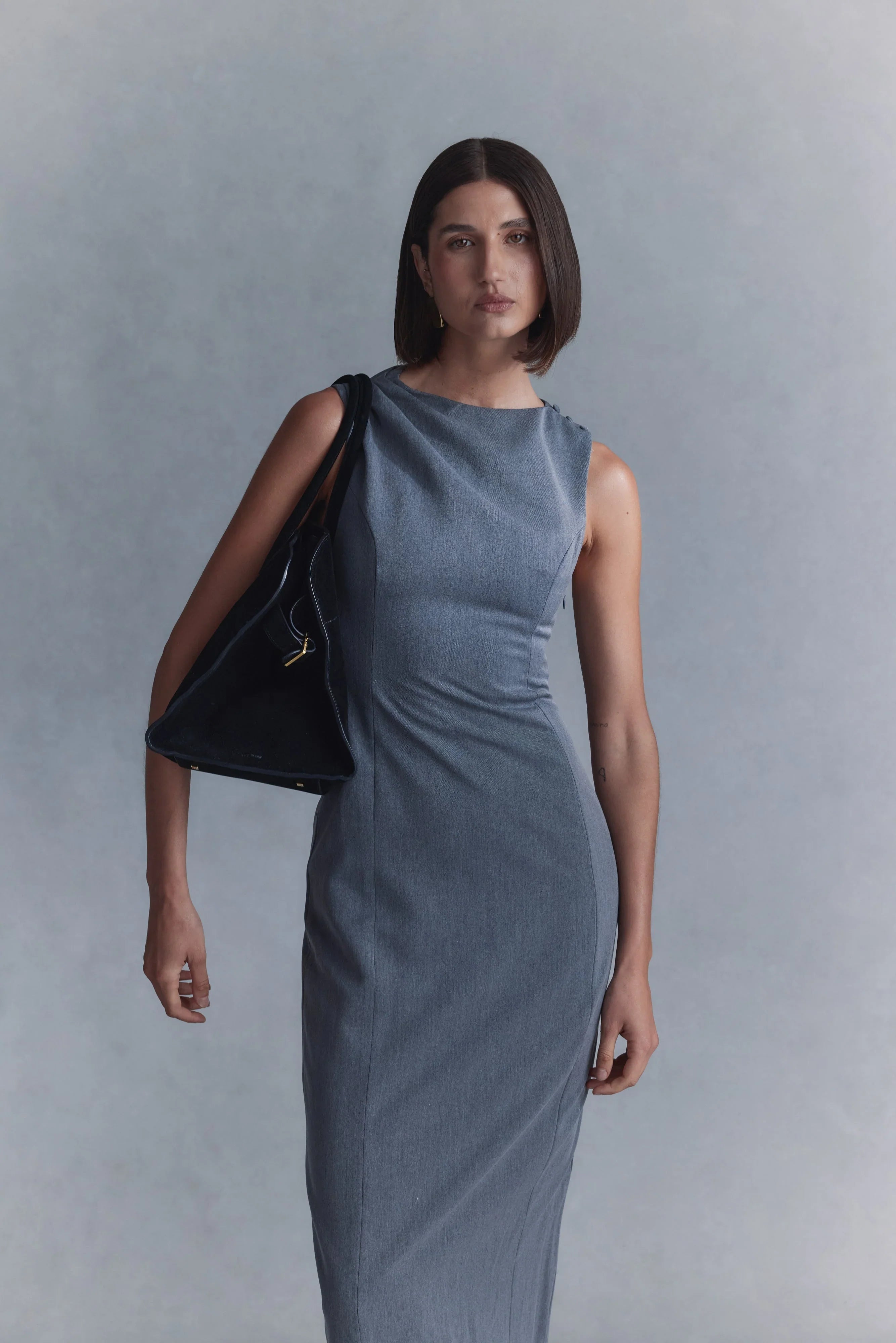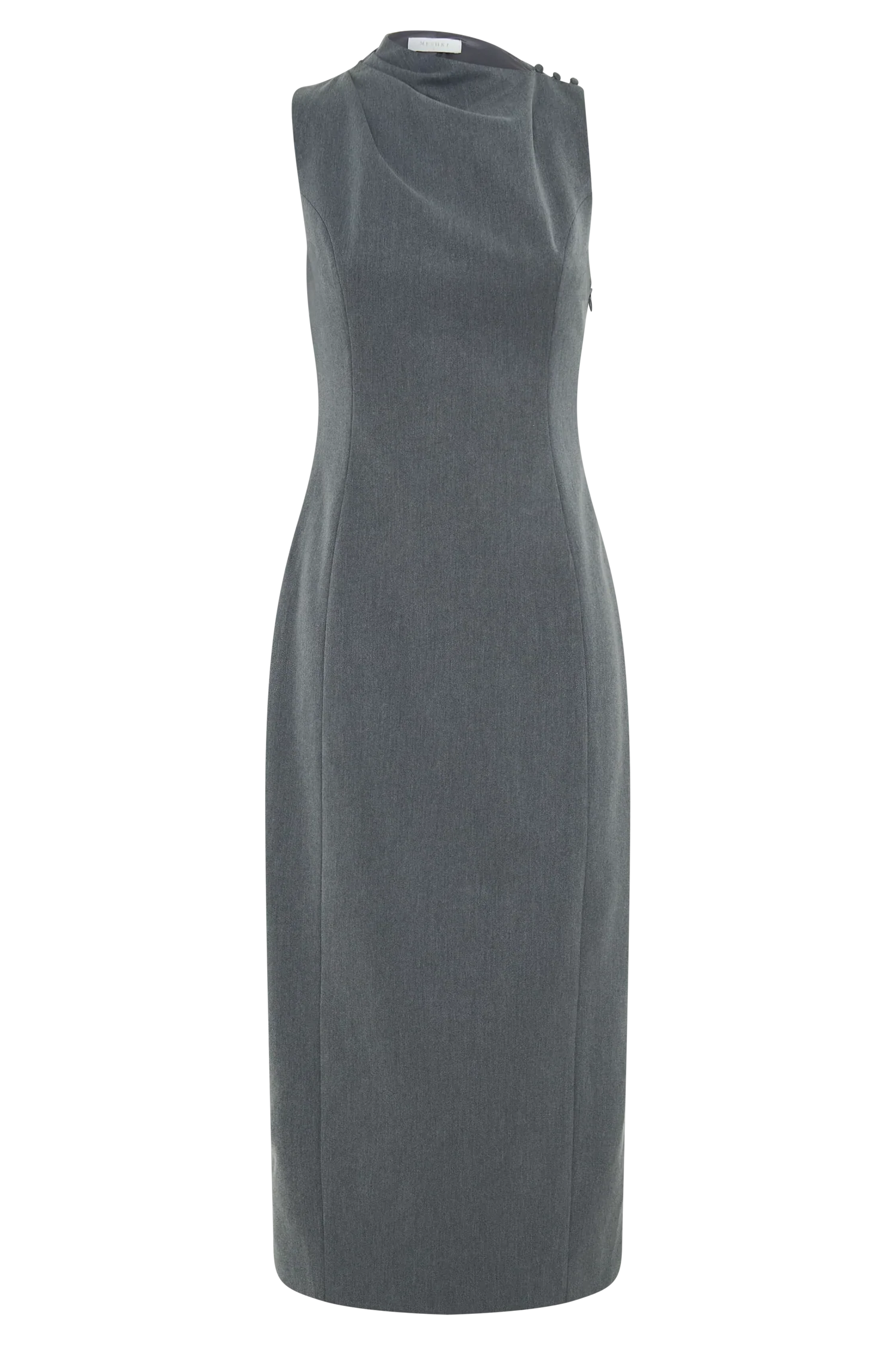The TAYLOR Draped Crepe Midi Dress is a stunning fusion of elegance and modern design. Its asymmetrical gathered neckline adds a unique and sophisticated touch, while the fitted bodice enhances your silhouette with its flattering panel detailing. The midi length and straight skirt create a sleek, streamlined look, perfect for both formal and semi-formal occasions. A side zip ensures a smooth fit, and the centre back vent allows for ease of movement. The Taylor Dress combines refined style with contemporary details, making it a standout choice for any special event.
