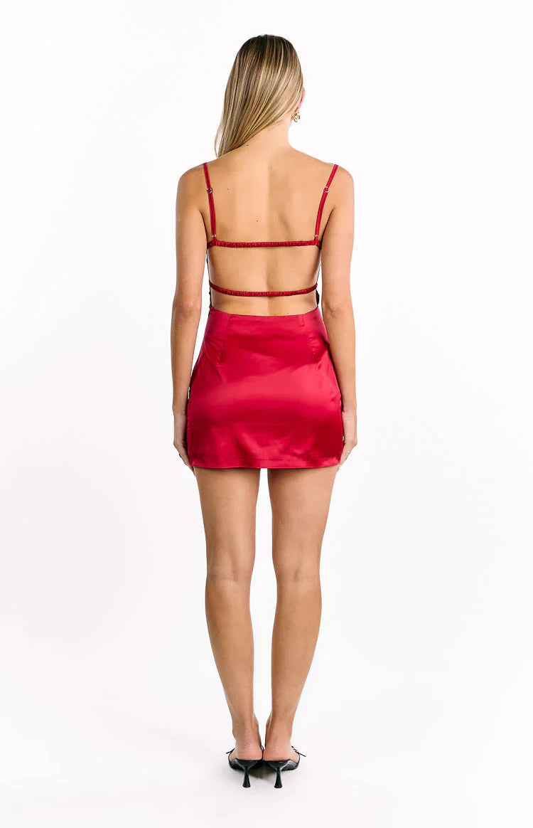Embrace a sultry and romantic vibe for in our stunning Trouble Wine Mini Dress! Showcasing delicate lace detailing on supportive underwire bust cups and a daring open back, this beautifully blends elegance with playful allure. Ideal for dancing all night, complement the rich wine hue with gold and tie your look together with black heels.